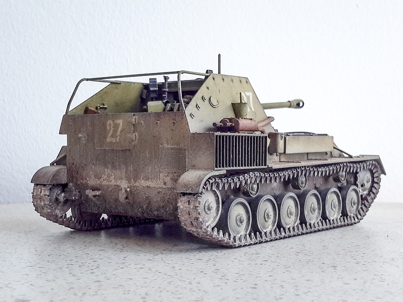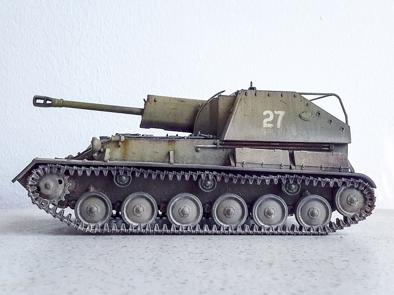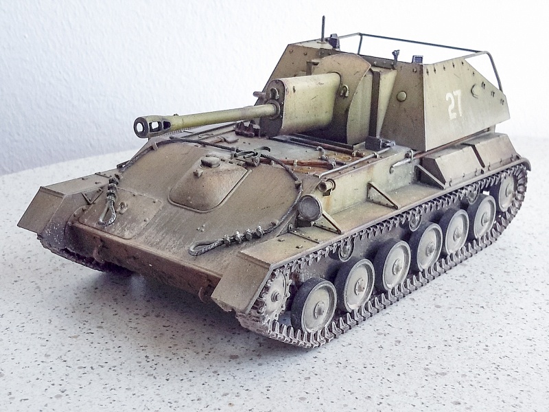 | Как обычно с наборами Тамии, налил в кробку клея, потряс ею и на выходе получилась хорошая самоходка. Сборка проблем не доставляет, набор что называется для отдыха. Красил красками Тамии, Гандзы, масло, химия и пигменты. Единственное что удивляет, до сих пор в наборах Тамии вместо троса дают ниточку. | |