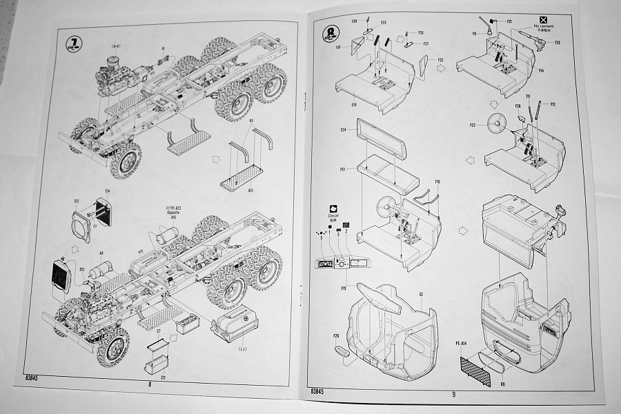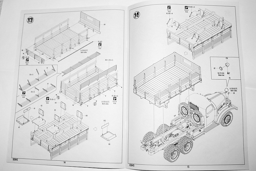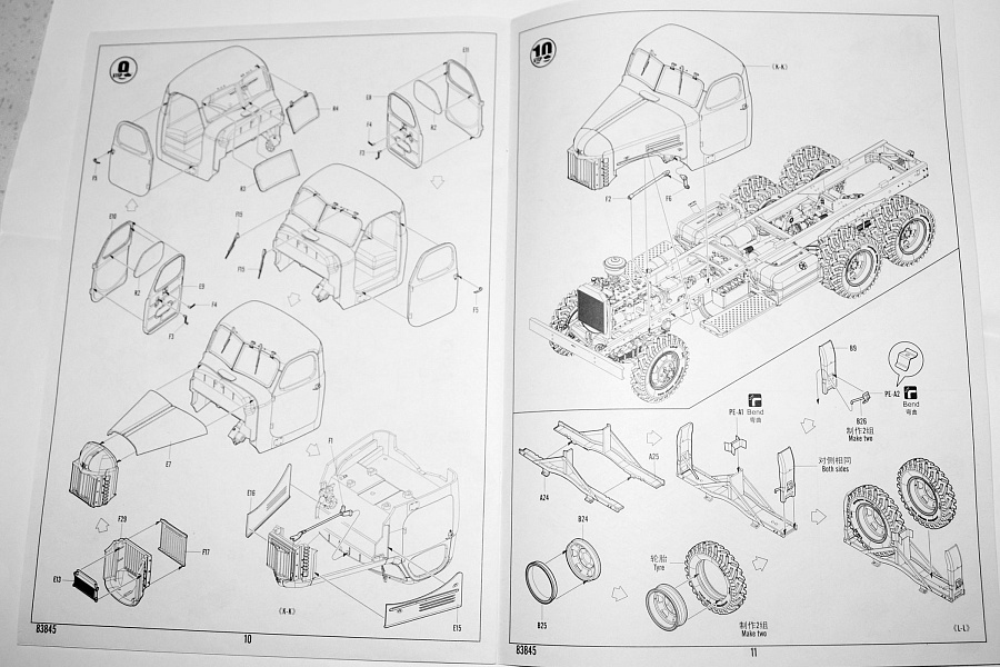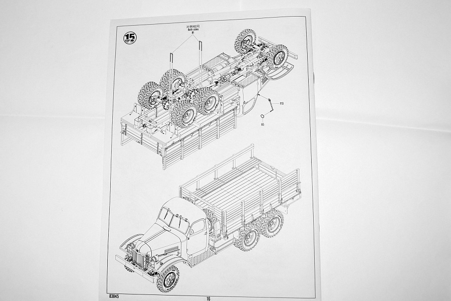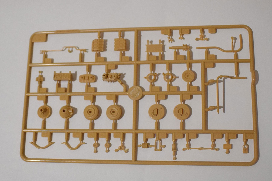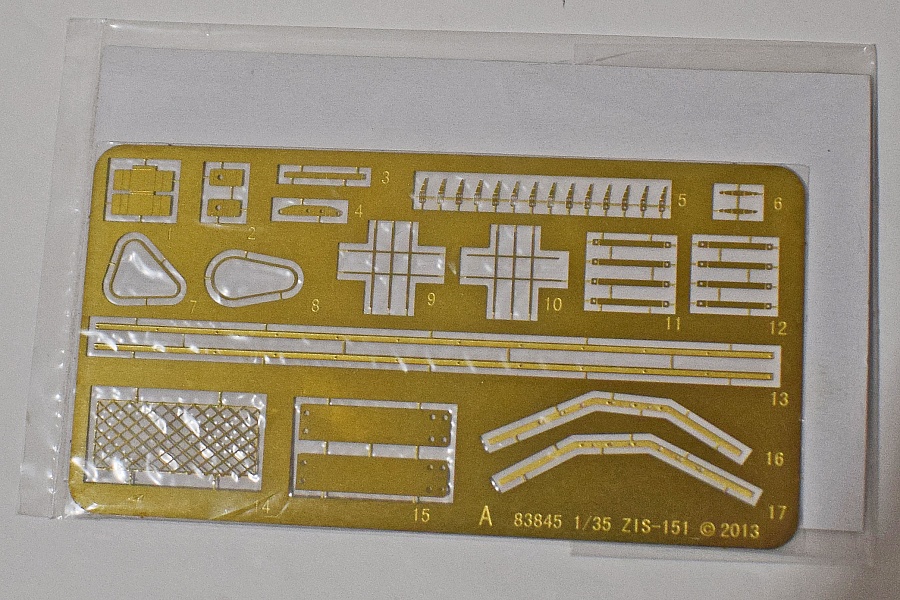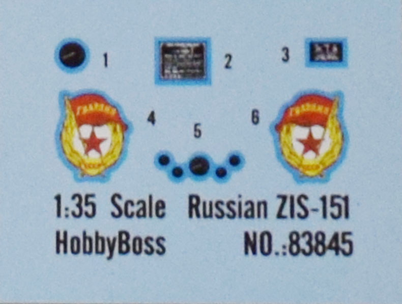 Литье отличное, чоткое, ажурное, облоя нет, следов от толкателей почти нет, а те, что есть, спрятаны в секретных местах. Деталей очень много, полностью дается двигатель, трансмиссия, интерьер кабины, всякая мелочевка на кузове. По стыкуемости сказать ничего не можно пока, но мы можем рассчитывать, что и стыкуемость там на приличном уровне. Есть форма или шаблон, не знаю как назвать, для того, чтобы правильно согнуть защиту фар. В чертежи набор ложится хорошо, на фото не смог этого показать, но там все норм. На кузове есть попытка сымитировать тектуру дерева - довольно убогая, типичная для Трампобосса, чисто компьютерная такая. Что больше всего меня интересовало в этом наборе - КОЛЕСА. С одной стороны, они лучше легендарных Звездовских колес (сравнительное фото прилагаю). С другой стороны, на боковине очень хорошо видна гордая надпись МОСКОВСNN ШNННЫN ЗАВОД. Это говорит нам, что колеса на Зис-151 прокляты, их невозможно сделать нормально в пластиковом наборе в масштабе 1/35. Декаль дается на один вариант, некий неустановленный юнит Советской армии. Качество печати среднее. В целом, набор производит очень приятное впечатление (за исключением колес). Со Звездой-Италери можно даже не сравнивать, это просто другая вселенная. Звездовский набор вырублен натурально из дерева. Кроме качества литья, Хобби Босс предлагает: