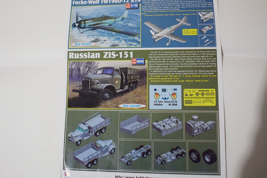 Разрешите представить вам обзор на модель фирмы Хобби Босс Зис-151. Модель вышла в 2015 году, не такая уж и новинка, но обзоров в сети очень мало, собранных моделей я вообще не видел, А ведь это важная веха - появление альтернативы культовому набору от "Звезды". Итак, что же предлагают нам наши восточные друзья? В стандартной плотной коробке из гофрокартона находятся: