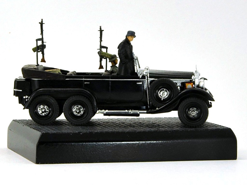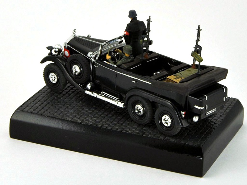 Но все же задам вопрос - почему нет свастик на флажках? Да и нужны ли флажки? Их обычно вешали, если в лимузине находилась какая-то крупная фигура из высшего руководства рейха. А тут пулеметы, ящики...