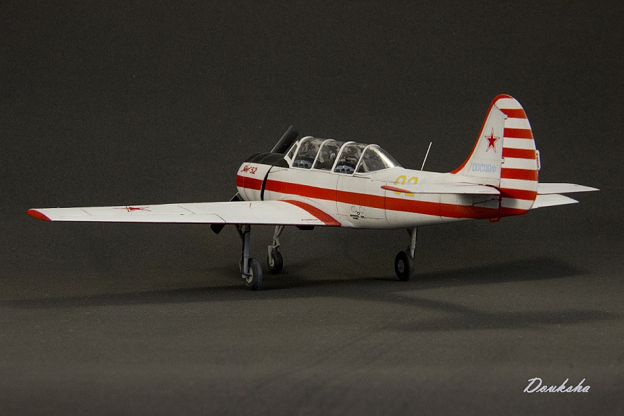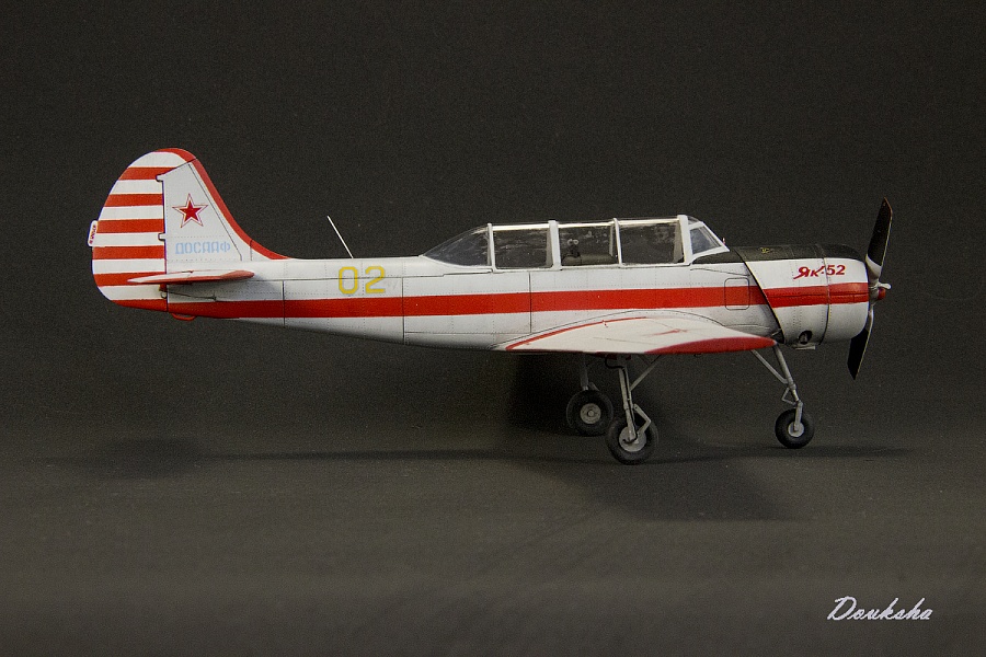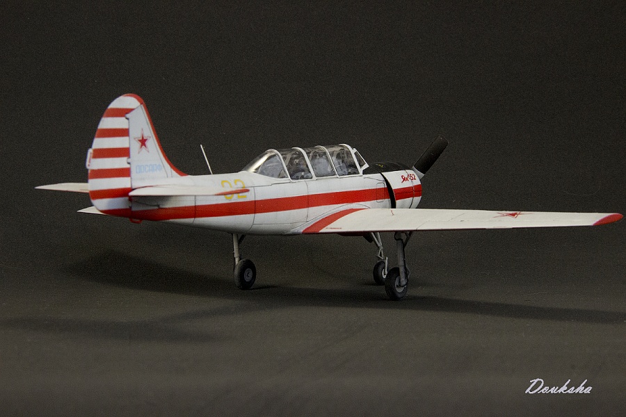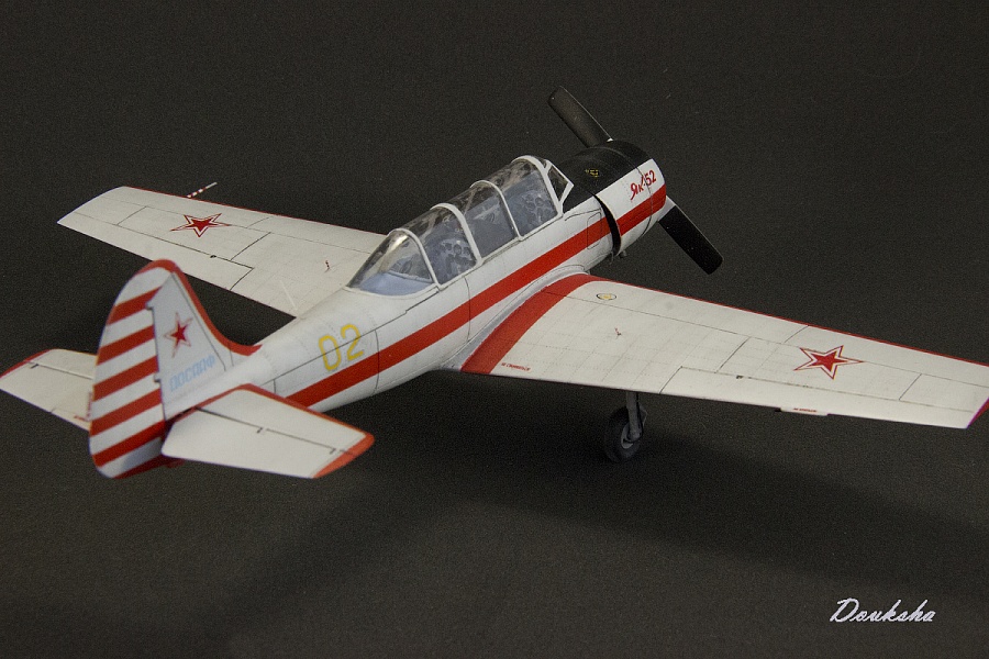 И ваш самолет улетает на мой личный аэродром "Избранное"! Ибо скоро предстоит участвовать в группен-стройке по Як-52. У вас замечательно получилось, и делать я буду именно ваш вариант - ДОСААФ СССР! С нормальным черным антибликом, а не с голубыми недоразумениями и сердюковскими звездами:)