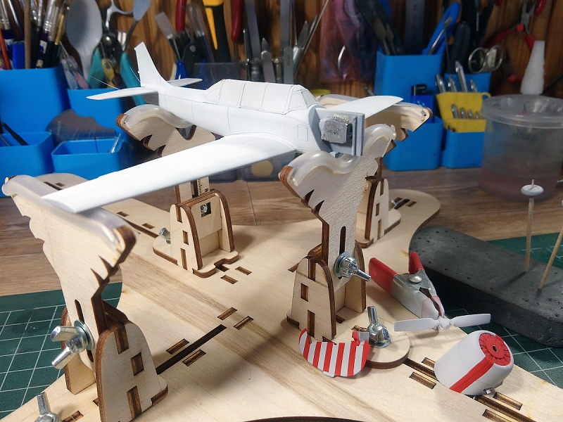 Антон, привет! Да, может и стоило его сделать с убранными шасси на подставке, но вот только в кабине нет пилотов, не логично будет его запускать в полет.