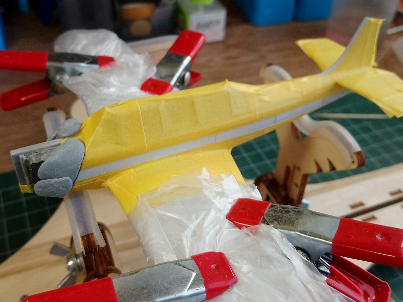 Вагиф, спасибо! Да, модель получилась с косячками, мне еще подсказали, что и поворот лопастей винта не в ту сторону, и триммера на левом элероне не хватает. Со всем согласен, все замечания принимаются. Но модель стоит на полочке и не выглядит такой большой, как на фото, поэтому мелкие детали в глаза не бросаются. Пусть все остается уж как есть.