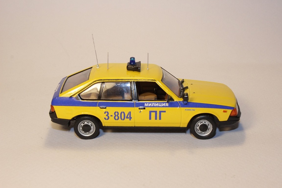 Подвижная группа или патруль города. Прежде всего видно на многих фотографиях видно, что желтый Москвич с синей полос раннего выпуска - с повторителем впереди крыла и шильдиком "москвич" сзади. Таким (ранним) и оформил. А вообще подходящий экземпляр случился с фотографии. Кстати для него оказались и декали. Остальное добавлен: фара-искатель, три антенки, тесла со стаканом, крепление запасного колеса. Салон окрашен в цвета как на ранних вариантах Москвиче - в коричневый. Фонари раскрашены. |