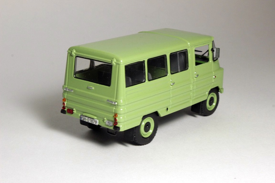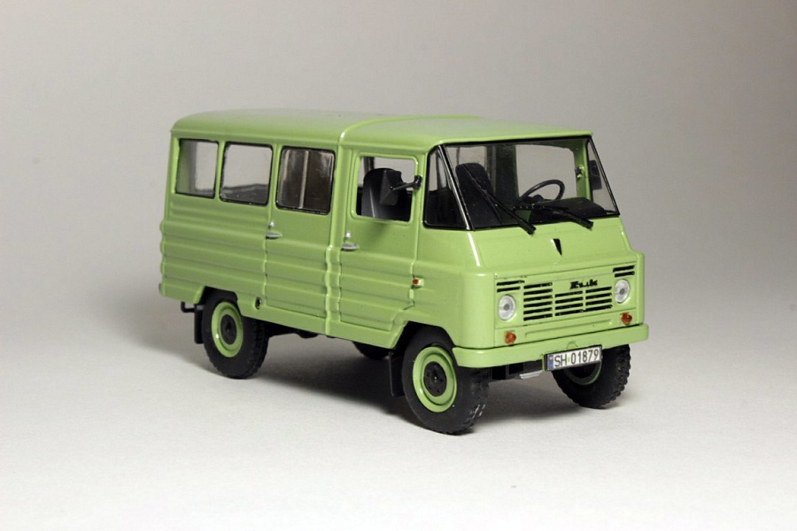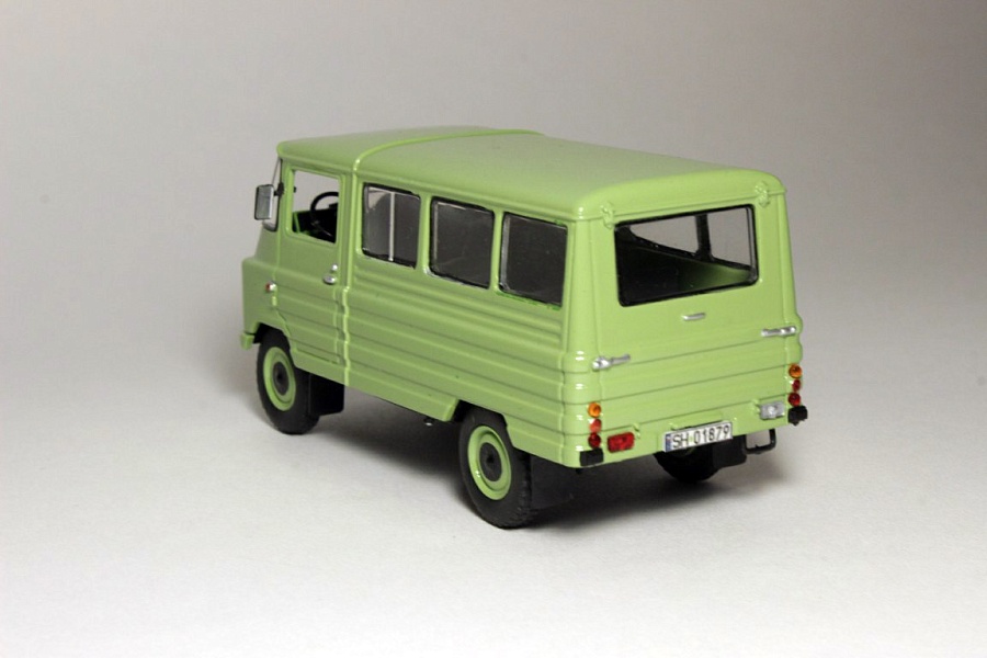 Воспроизведен микроавтобус ZUK A-18. Прорезано заднее окно, салон оформлен как в автобусе, кузов окрашен подходящим ZUKовским цветом - зеленая липа, номера польские с флагом города Хо́жув Силезского воеводства, немного обозначено на донышке. Видимо, это еще не последний. Я приступил и нас ожидает ZUK A-13. |