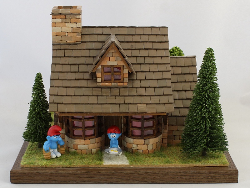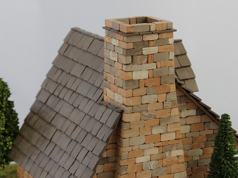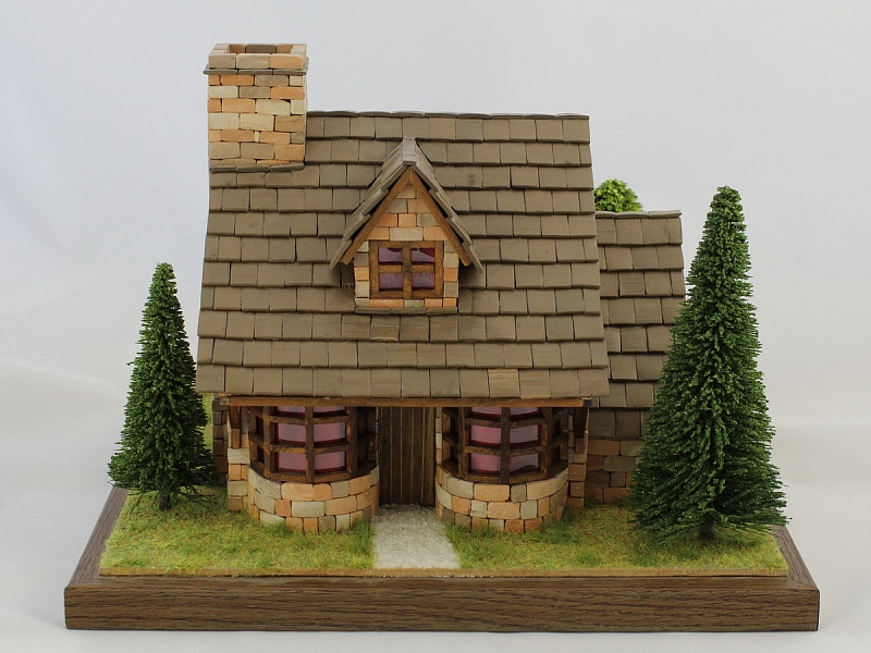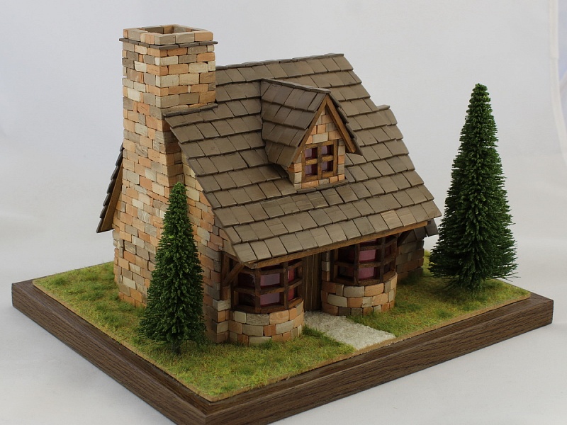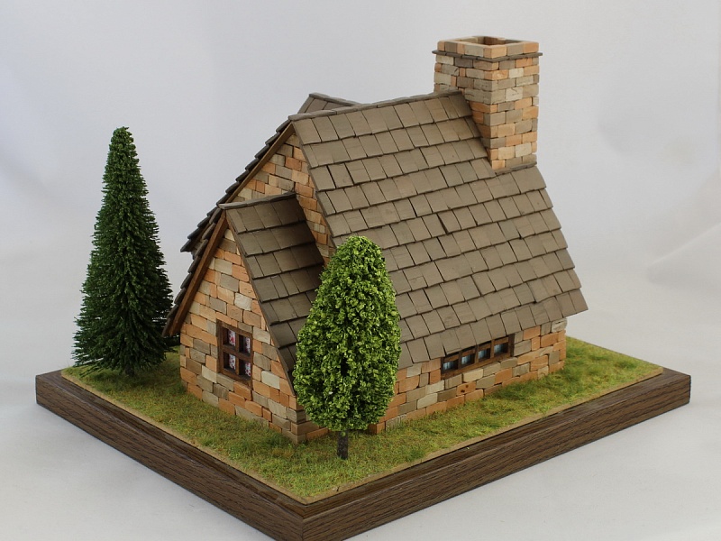 За десятилетия занятия моделизмом периодически возникает желание отдохнуть от сборки пластиковых моделей из наборов. Вот тут на помощь и приходят не столь распространенные виды нашего хобби. В этот раз решил попробовать заняться архитектурным моделизмом из керамики. Данный деревенский домик собран из набора испанской фирмы Domus Kits. Масштаб, как заявлено производителем, 1:50. Домик собирается из керамических кирпичей на картонном каркасе. Размеры кирпичей варьируются и требуют подбора по рядам и обработки (я делал это крупной наждачкой). Разнится и цвет кирпича. Наверняка это можно использовать при создании на стенах рисунка из кирпичей, но я не стал заморачиваться. Склеиваются кирпичи клеем ПВА. Оконные рамы и двери в наборе нарисованы на картонном каркасе, но я сделал их из реек. Основание из ДВП было в наборе, рамку заказал в багетной мастерской. Трава, ёлочки и дерево фирмы NOCH для ЖД-макетов. Часто спрашивают про массу изделия, поэтому сразу напишу, что весит это всё ровно 1 кг вместе с рамкой и деревьями. Советую посмотреть сайты фирм Domus Kits или Aedes Ars, там есть не только домики, но и исторические здания, замки, крепости. |