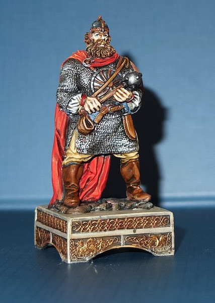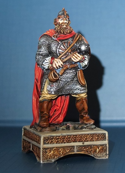 Всем привет! Давно хотел расписать кого-то из родного эпоса, роспись темперой и акрилом, вроде неплохо получилось) Масштаб 54 мм, высота с подставкой около 8 см Илья́ Му́ромец (полное былинное имя — Илья Муромец сын Иванович, также встречаются варианты: Илья Моровлин, Муравленин, Муровец, Муромлян[3]; Илия-змееборец[4]) — один из главных героев древнерусского былинного эпоса, богатырь, воплощающий общий народный идеал героя-воина. Согласно легенде, крестьянский сын[2] и оберегатель русской земли от врагов, параличный до 33 лет, получает силу от волхвов, борется с Соловьём-разбойником, идолищем, жидовином, татарами и, наконец, окаменевает[5]. Впервые появляется в письменных источниках в XVI веке у Ф. С. Кмиты-Чернобыльского как Илья Муравленин, у Эриха Лясоты — как исполин Илья Моровлин в Софийском соборе Киева[6], в некоторых былинах XVII века — как Илья Мурович или Илья Муровец[7][8]. Некоторыми исследователями отождествляется со святым Илией Печерским Чеботком, мощи которого покоятся в Киево-Печерской лавре. |
