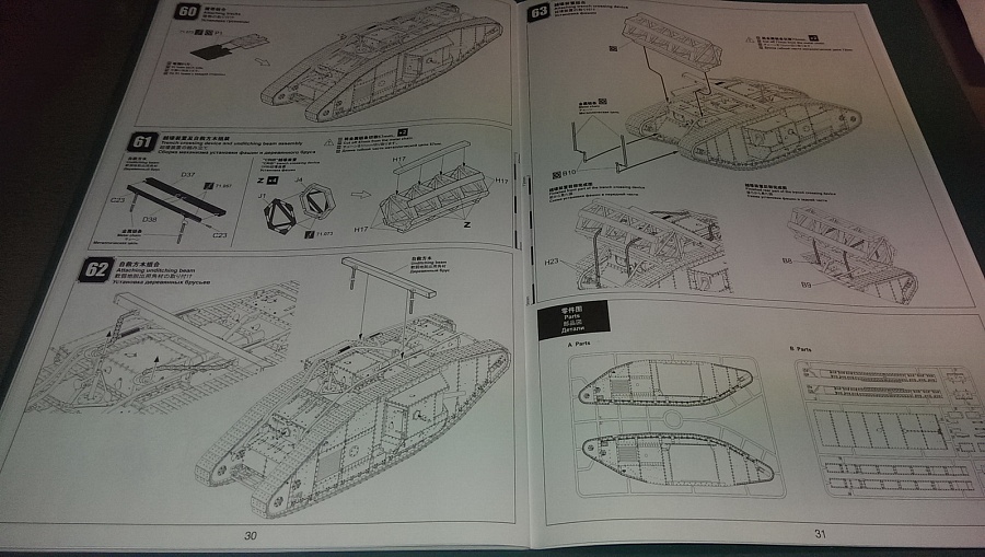 Приветствую всех каропчан! Наконец доехал до меня Пятый МАРК от Менга, так что сегодня хочу рассказать Вам об этом наборе и показать что лежит в коробке. Поехали! Артикул: TS-020 Mark V - британский тяжёлый танк времен Первой Мировой войны. Боевые машины Mk.IV и Mk.V — основные английские танки ПМВ. Несмотря на множество недостатков, они успешно участвовали во многих сражениях и широко использовались в армиях других стран. Новая модификация Mk V существенно отличалась от своих предшественников как внутренне, так и внешне. На ней установили четырёхскоростную, планетарную коробку передач системы Вильсона и специальный танковый двигатель «Рикардо». Отныне машиной управлял один человек — удалось избавиться от бортовых коробок передач. Отличительным внешним признаком Mk V стали воздухозаборники системы охлаждения, смонтированные по бортам танка. Радиатор устанавливался в одном блоке с мотором. Рубку командира увеличили, а в корме установили ещё один пулемёт. Первые Mk V начали поступать в войска в мае 1918 года, а всего до конца войны было создано 400 машин — по 200 «самцов» и «самок». Данный набор представляет собой модификацию MALE (самец). Коробка однако внушает... прежде всего своей эм.. глубиной) Выглядит мощнооо! Великолепный боксарт, впрочем как и обычно у Менга с оформлением все гуд! Внутри коробки прям таки гора пластика, именно такое впечатление посещает при ее открытии) Я насчитал аж 26 литников! Основной цвет пластиковых деталей - песочный, как и в большинстве менговских наборов. Сборные траки располагаются на литниках черного цвета. Траки рабочие на защелках, их потребуется срезать с литников, соответственно зачищать следы среза в трех местах. А вот ТАКОМ дает траки уже готовенькие, в пакетике, бери да собирай! Но зато в качестве отливок деталей на литниках Менг заметно выигрывает у ТАКОМ. Сразу заметно более четкое литье. Почти все литники отлиты в многоразъемных формах, что позволяет избежать излишнего членения деталей. Помимо литников есть еще одна монолитная деталь - вроде бы кожух двигателя. Набор снабдили небольшой платкой травлишка, что определенно радует, как и прилагаемая длинная черная цепочка. Лист с декалями также не велик, выбор маркировки дан лишь на машины Британской армии и музейный экспонат в британском же Бовингтоне. Инструкция, как водится шикарна, тут Менгу нет равных точно! Качественная печать, хорошая бумага, цветные схемы окраски и маркировки. Схема сборки очень подробна и состоит более чем из 60 шагов, однако! Сравнив наборы от ТАКОМ и Менг, по моему мнению, можно сделать однозначный вывод в пользу последнего! Главное это конечно наличие полного интерьера... Хотя это не для каждого решающий фактор, но несомненно плюс. Детали у Менга отлиты на порядок четче и детальнее, да и пластик лучше чем у ТАКОМ, более мягкий и удобный в обработке. Преимущества модели от ТАКОМ состоят в том, что во-первых траки не требуют срезания с литников и дополнительной обработки. Во-вторых, ТАКОМ дает возможность выбора модификации танка (Самец, Самка, либо Гермафродит) и множество вариантов окраски\маркировки, тогда когда Менг предлагает собрать лишь Самца британца. Подводя итоги, скажу что набор от Менга меня безумно порадовал, очень рекомендуется к приобретению! Интересно, что при всем этом, цена набора всего то на 300 рублей выше аналога от Т