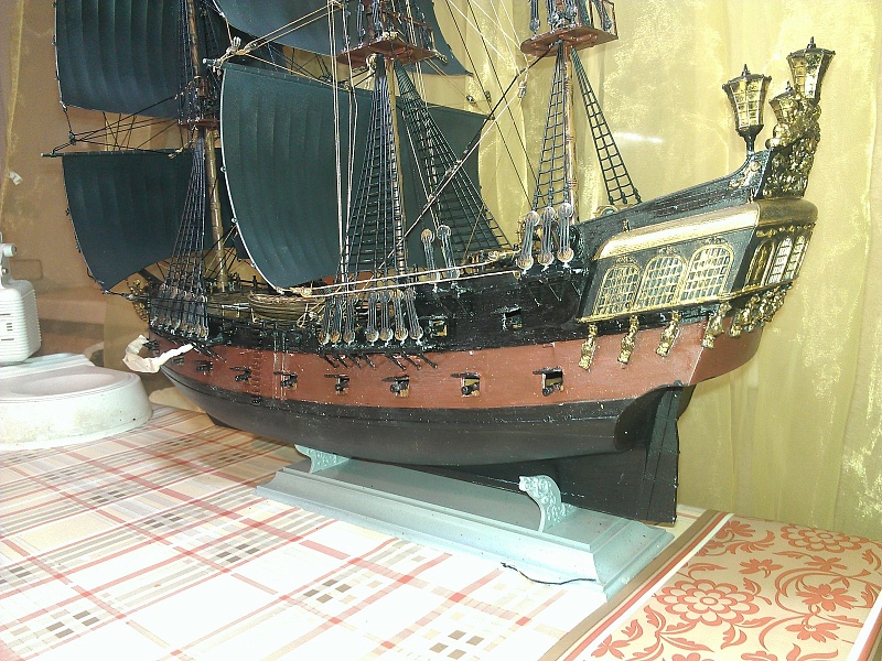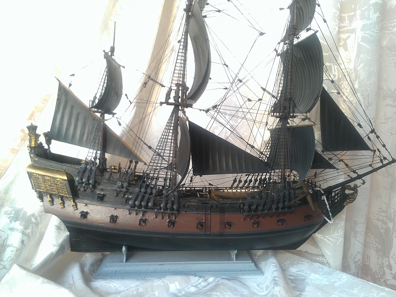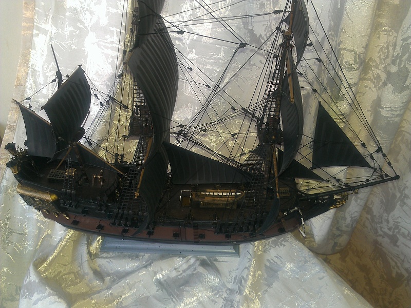 критика приветствуется "если бы не непонятно откуда взятые хрен-пойми-коричневые борта" а какого цвета по вашему должны быть борта на черном паруснике ? что-бы не получился кусок угля? я там еще серым обвел если приглядеться еще хотел состарить но поболся испортить , подарил не эксперту моделизма - ему очень понравилось