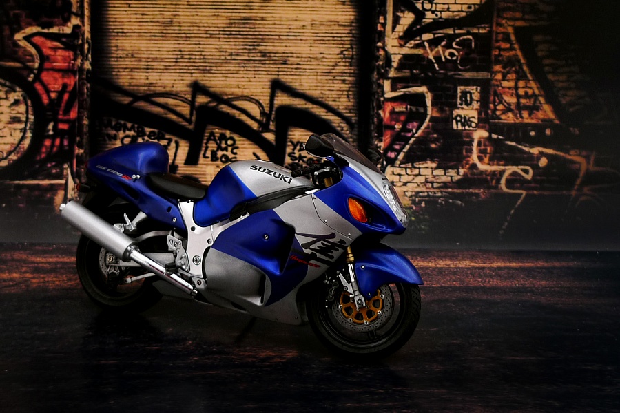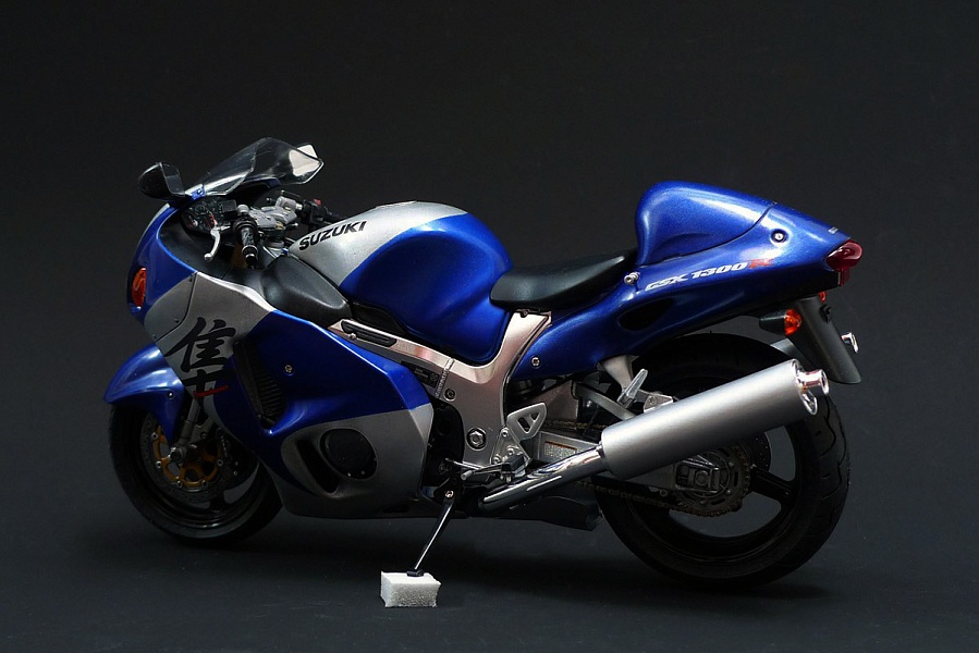 Всем привет, достроил очередной байк от тамии. Было время когда мечтал о таком настоящем и был близок к его покупке, но потом "перегорел". В галерее нашел Бусу только в ее спортивной версии от Yoshimura, так что скорее всего, набор впервые на сайте. В данном наборе представлено первое поколение модели, которая производилась с 1999 по 2007 год, но маски даются только для 99-01 и 02. И это неудивительно, ведь набор вышел аж в 2002г. В моем случае представлена Suzuki GSX1300R 2002 года выпуска. "Пластик" окрашен ТS-ми из инструкции, покрыт 2к лаком, остальное - всем что нашлось на полках. Доработки немногочисленные - трубки, проводка, хомуты на двигателе, сварные швы на маятнике, болты на глушителях. Из википедии: Suzuki GSX1300R Hayabusa — мотоцикл класса спорт-тур, производится японской компанией Suzuki с 1999 года. Сразу же завоевал звание «самый быстрый серийный мотоцикл в мире» с максимальной скоростью 303—312 км/ч. «Хаябуса» (яп. 隼) по-японски означает «сапсан». Название этой птицы часто служит метафорой, обозначающей скорость, так как сапсан — самая быстрая из птиц: во время охоты он резко пикирует на жертв, развивая скорость 290—325 км/ч. В частности, выбор названия был обусловлен тем, что сапсан обыкновенно охотится на дроздов, и эта иллюзия отражала намерение производителей Hayabusa отобрать звание самого быстрого серийного мотоцикла в мире у Honda CBR1100XX Super Blackbird («Супердрозд»). Скорость Hayabusa превзошла Super Blackbird на 10 миль/ч (16 км/ч). |