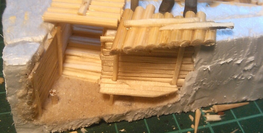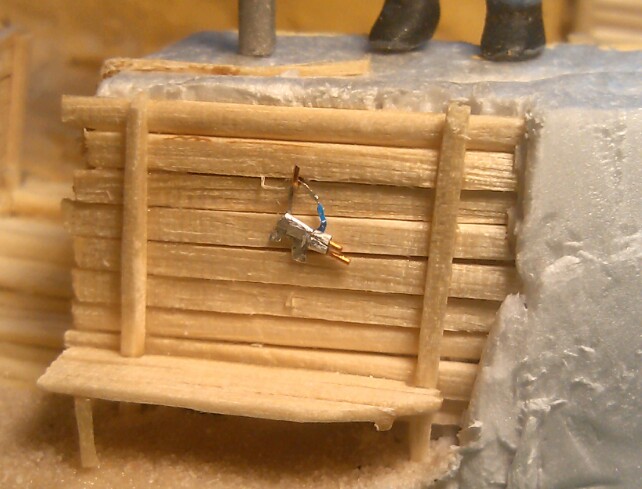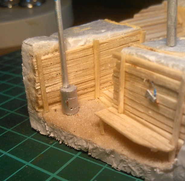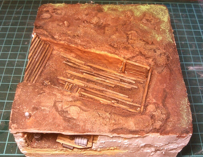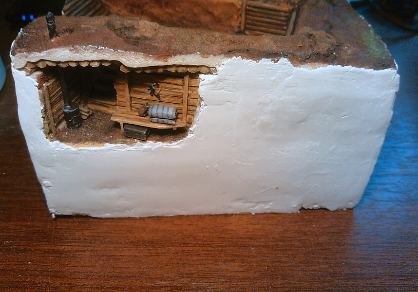 | Что-то похожее на ЗС-88 на базе Звездовского бтр-80. В принципе все  и так видно, как мне кажется, что тут пояснять. Много чего я тут сделал впервые - впервые высокая подставка с рамкой, впервые сделал "срез", впервые попытался в фотографию. Общее время изготовления (с учетом почти трехнедельного прокрастинирования) 40 дней. Машина: шанец - проволока и фольга; трос - проволочка из наушников, проволока и литник (для коушей); "матюгальник" - литник, проволока, доширачка, спандекс (для типа провода). Нет, снимать тучи не обязательно, специально озадачился этим вопросом в самом начале. Подставка: основание пенополистирол, пиленая фоторамка (и наконец-то до меня дошла простая истина - танцевать надо от печки, и сначала подготовить рамку и основание, а уж потом худ.часть), бока пытался вывести обычнок шпатлевкой (капризная дама); худ.часть - песок, гипс пва; окоп - сначала залил яму в полистироле акриловой шпаклевкой, сверху смесь из пва и песочка, одежда крутости (кажется это так называется) из бамбуковых шпажек; перекрытая щель - бамбук на перекрытия и расщепленные спички; ящик, матрас, вещмешок - двухкомпонентка; автомат - фольга и проволока; печь - фольга, под основанием стоит ночник из фикспрайса, печь горит. Окраска: грунт кудо, мастер-акрил, худ.акрил, пастель, морилка под дуб для рамки. | |