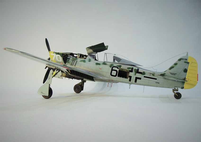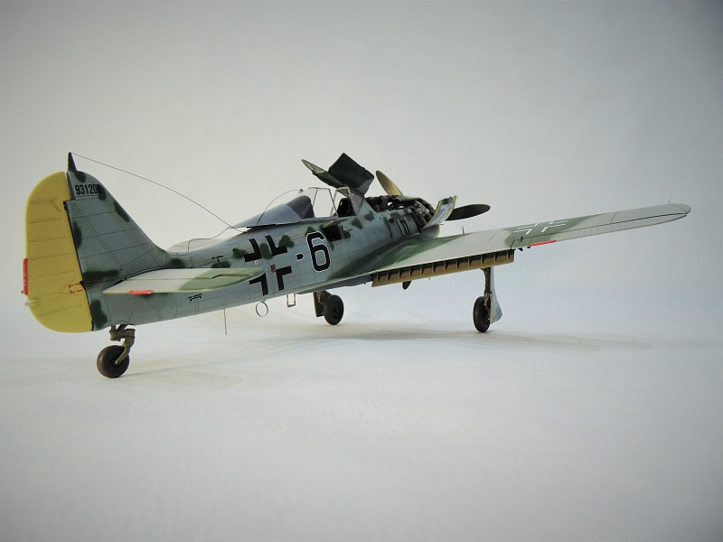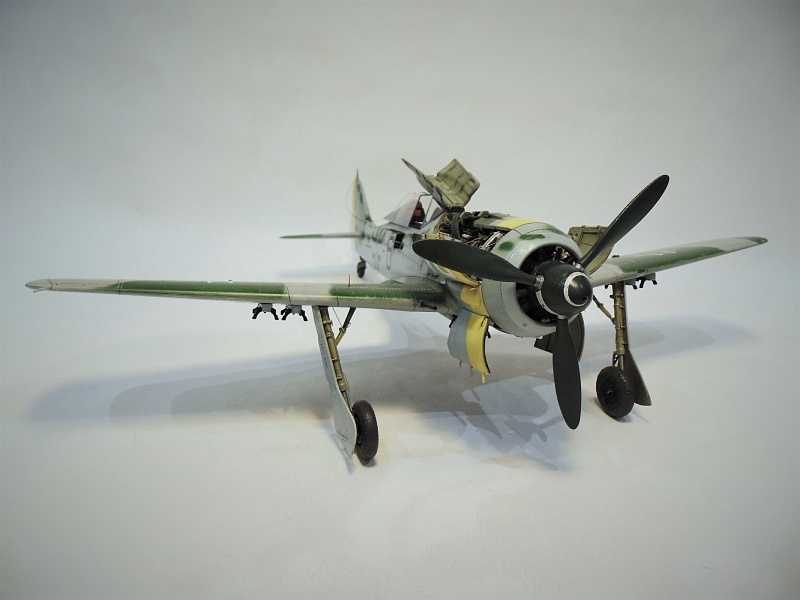 ПО натяжителю антенны. Да , действительно на дутых фонарях у ФВ и Та антенна всегда провисала при открытом фонаре. Для меня неверны краски - верх крыла, ну и фюзеляж.. Самолёт смотрится светлым и ярким. Про камуфляжные пятна писать не буду - тут действительно кошка. И вроде угол установки шасси ( при виде спереди) неверен. И всё. Для кошки весьма похвально. Двигатель сделан хорошо, отсек вооружения тоже, кабина, ниши, отсеки - всё на уровне. Удачи!