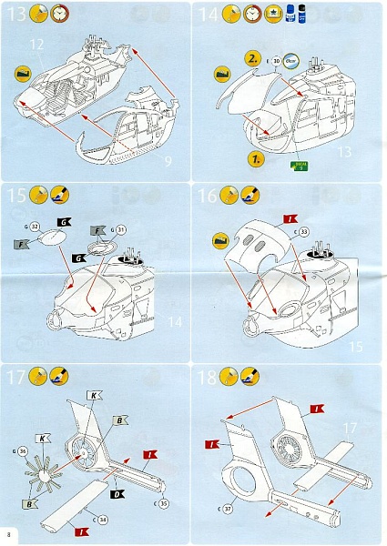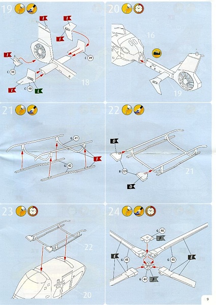 Но имеется любопытный нюанс. У меня есть более старый выпуск в другой ливрее и с чёрно-белой инструкцией (04649). Так вот, в этой инструкции предлагается каждую из лопастей НВ отрезать поперёк от "корневой" части и, развернув на 180 градусов, обратно приклеить встык. Что при этом делать с замечательно предусмотренным провисом - не уточняется. Кошмар!