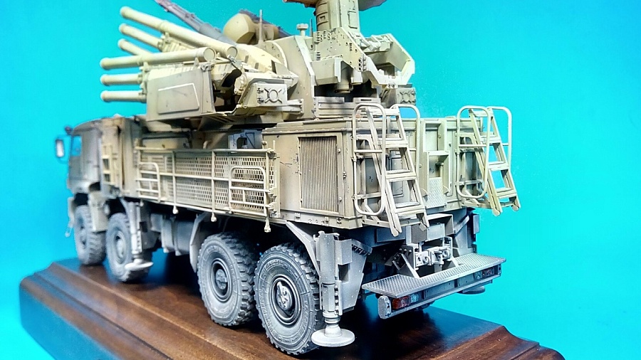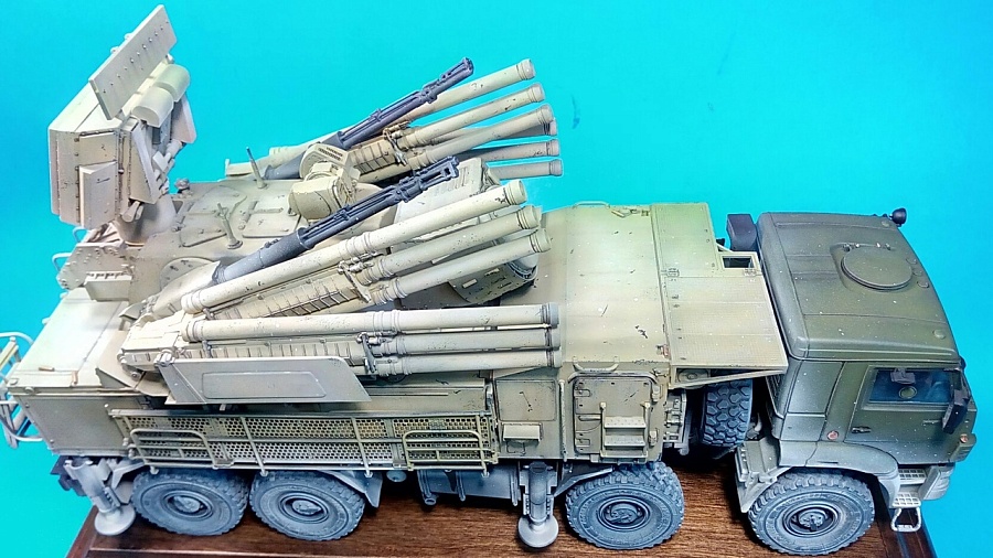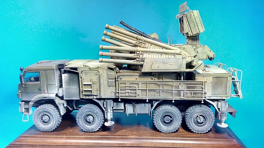 | Доброго времени суток! Завершил постройку Панциря,Модель делалась на заказ.По сборке особых нареканий не возникло,сплошное удовольствие! Для себя планирую данную модель собрать в развернутом положении.Схема окраски выбирал заказчик , понравилась ему модель панциря от европейского моделиста(как бы не Азиатского) фамилию автора увы не вспомню... В сборке использовал колеса под нагрузкой из группы по дополнениям в ВК "Дополнения к моделям 1/35" достойные колеса и не дорогие,по допам больше не чего не делал и не менял..В целом остался доволен как сборкой так и самой моделью в общем. Краску использовал тамию,МиГ | |
