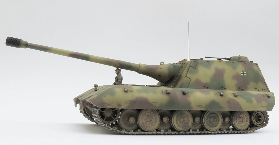 Крутая арийская броненаркомания! Очень интересно как в башенку влез этакий дрын и как он там обслуживался)) Что есть, то есть. Монструозная махина! KwK в наборе идет с казенной частью, люки на башенке можно сделать открытыми, так что там хорошо все видно, как и что помещается. Обслуживание, прицеливание - вот это загадка, это да.