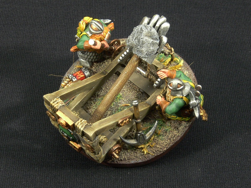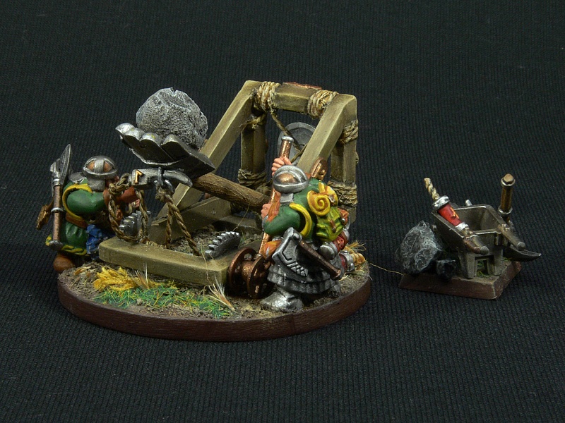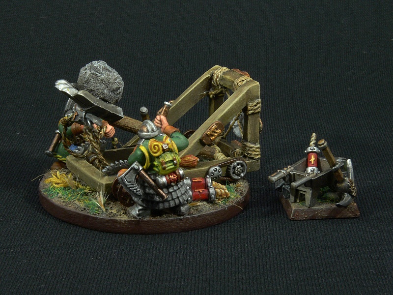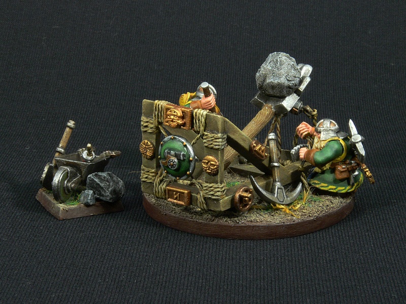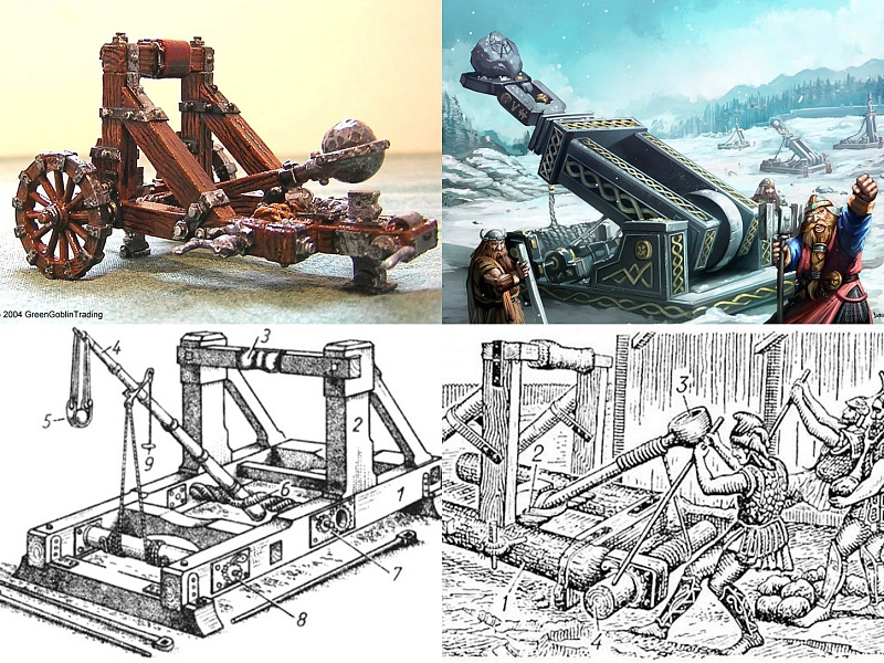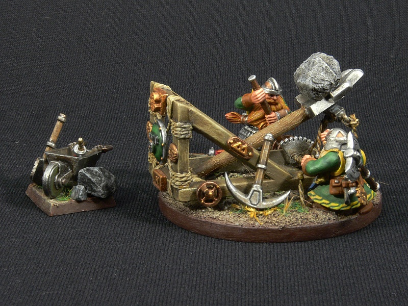 Виктор, так и есть - Вы полностью правы! Практичность конструкции была изменена в угоду зрелищности. А говоря попросту - правильно сделать не получалось из-за малого размера подставки. Если уменьшать масштабность модели, то гномы станут циклопами ) У меня перекладина практически на краю подставки, а должна быть ближе к середине, но тогда приходилось отодвигать назад метательный рычаг и он выходил за рамки подставки.