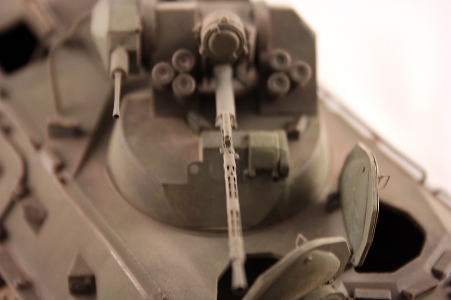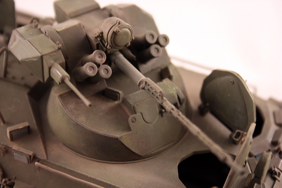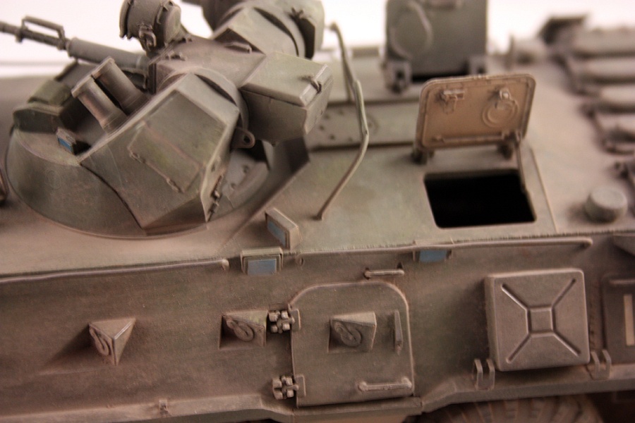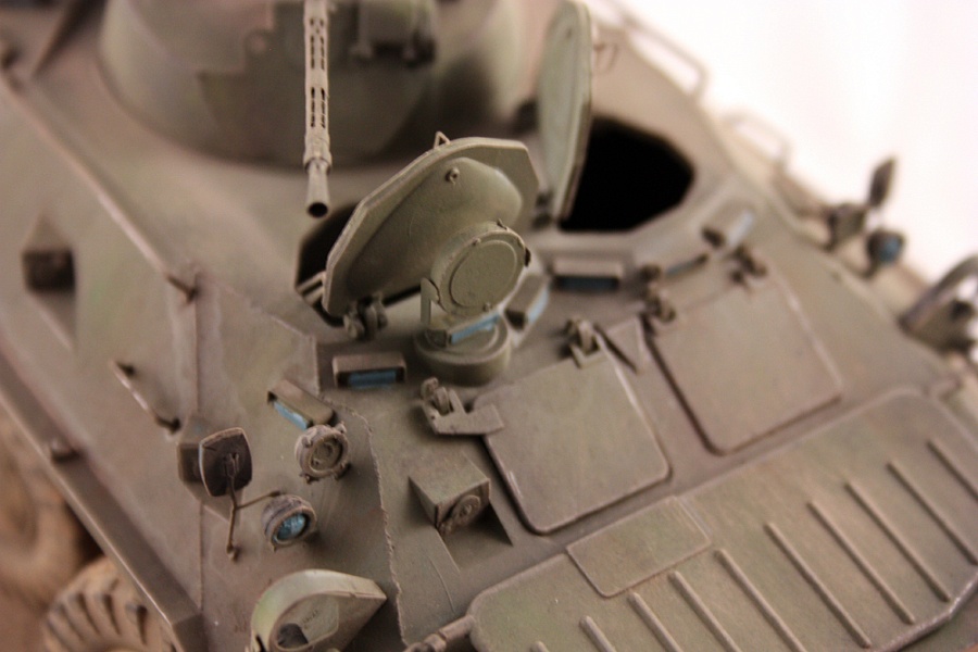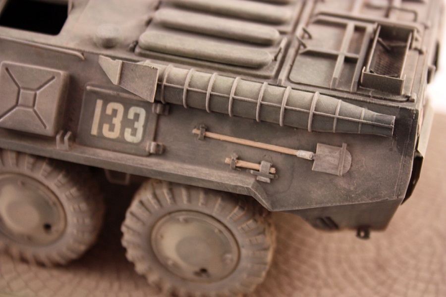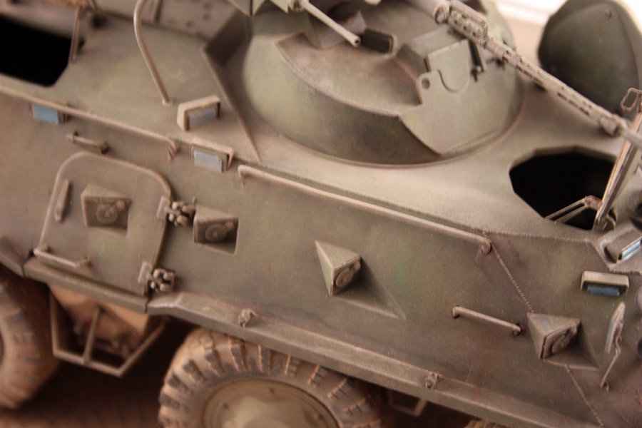 | БТР-80А - это дальнейшее развитие основного российского бронетранспортера. На новом образце установлена башня улучшенной конструкции, что позволяет вести огонь на углах возвышения до 70 градусов, поражая вертолеты и самолеты противника на дистанции до 4000 м. На машине установлен танковый ночной прицел позволяющий в ночных условиях поражать цели на дальности до 900 м. Ну... и на сайте Звезды, это тоже написано.. Честно сказать, с описанием плохо, собирал в качестве подарка, очень с большими перерывами. Использовал набор травления, но не полностью, мастерства недостаточно :) Покрашено красками Тамия, как доступными, со всех сторон, в хорошем смысле этого слова :) Очень помогли с палитрой для триплекса.. но к сожалению, с предыдущей модели, так и не научился смешивать краски красиво:( Модель "опылена" пигментами Вилдер, и простым карандашем. Понимая, что до идеального варианта далековато, предлагаю конструктивную критику перенести сразу на стадию окрашивания :) Сборка тяжела, и честно сказать, пока не очень интересна... наверное "втянутся" еще только предстоит :) С уважением, |