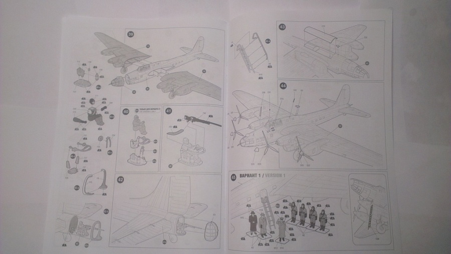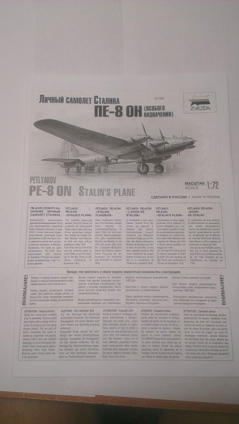 | "Возможность использовать дальний бомбардировщик Пе-8 для трансокеанских перелетов была успешно доказана в мае 1942, когда советская правительственная делегация была доставлена в США на борту этого самолета, после чего он благополучно вернулся в Москву. Возможно, что один из двух построенных Пе-8 Он был использован для полета И.Сталина в Тегеран на знаменитую конференцию глав союзных держав." Встречает нас стандартная коробка из толстого картона для больших моделей и красивый бокс арт с изображением аэродрома и самолета. В ней 9 литников с деталями и один прозрачный с остекленением. Качественная декаль с опознавательными знаками и приборными досками в кокпит. Инструкция сделана в виде книжки, все очень хорошо напечатано и понятно будет даже новичку. Так как это Пе-8 "особого назначения", "Звезда" доложила литник со Сталиным, Молотовым и Берией, а также 4 пилота, стоящих по стойке "смирно". Спасибо фирме за то, что не убрала литник с бомбовым вооружением, он лишний. Хотя если делать Пе-8 фронтовой, то он как раз понадобится. Вообщем, из этого набора может получится совершенно два разных самолета. Мое мнение - лучше взять этот набор нежели Пе-8 обычный. Данный набор мне очень понравился, как и все новинки последних лет. Не советую брать сей кит новичкам, очень сложная сборка! |