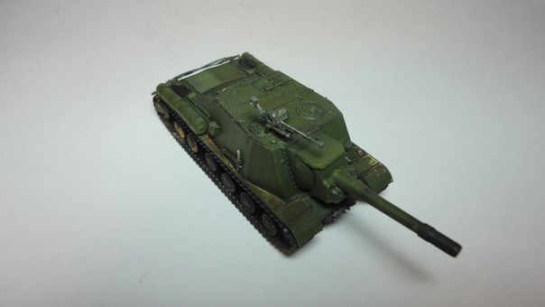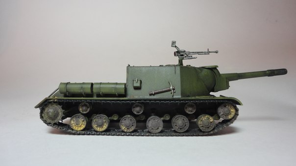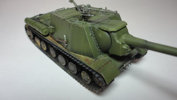 | Представляю вашему вниманию модель САУ ИСУ- 152 в масштабе 1:72. Из плюсов модели можно выделить отличную деталировку, копийность, разделение корпуса и рубки САУ на три части, для более удобной склейки гусенич, покраски катков. Мину с ИСУ на мой взгляд только один- ломкая гусеница. Красил в 4БО, полученным смешианием красок от тамии. Из "загадинга" использовал смывки, высветления, пигменты, кое-где сколы. | |