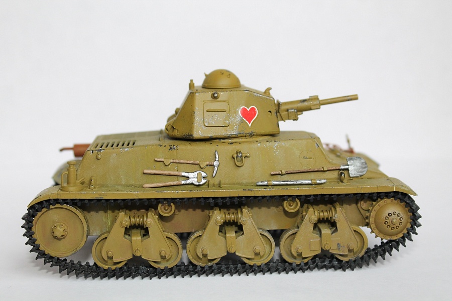 | Впервые выставляю на всеобщее обозрение свою модель. Сборка полностью "из коробки", без исторической привязки. Набор понравился, собирается отлично, только с траками пришлось помучаться - слишком уж мелкие. Базовый цвет Vallejo 71081, тонировка маслом Гамма, сколы - акрил от Тамии. Конструктивная критика приветствуется. Спасибо за внимание. | |