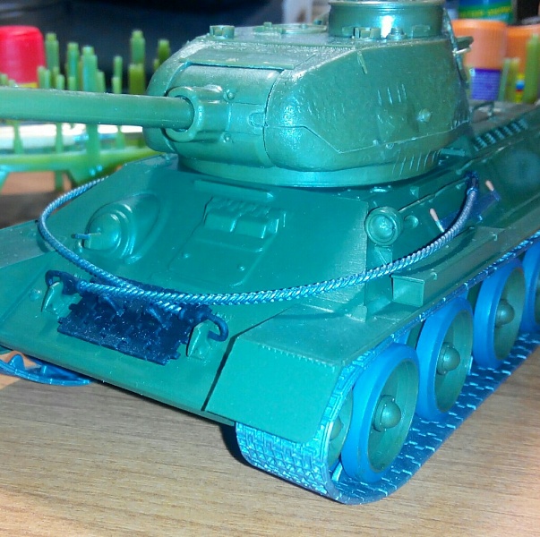 | Доброго времени суток! Прошу Вас оценить мою первую модель,т.к. не владеют различными техниками окрашивания модели, танк покрашен просто кистью и красками Звезда. Склеен также клеем Звезда. Гусеницы из набора. Т.к. танк находу) строго не судите их не реалисненость. | |