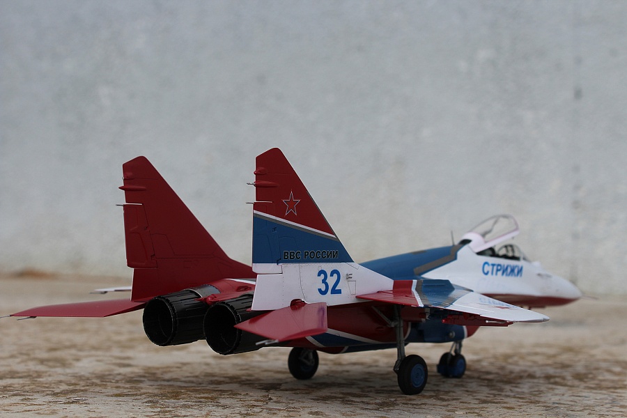 | Приветствую, форумчане! Выставляю на Ваш суд очередную свою модель. МиГ-29 (9-13) от GWH в 1/48. Набор порадовал своей детализацией, наличием травленых деталей. Единственный и наверное всем известный момент огорчения это мотогондолы. Там пришлось изрядно все прошпаклевать. Перед началом сборки модели, камуфляж был уже заранее известен. Заготовлены декали (отдельное спасибо Алексею Бацких), намешана краска и тонны фотоматериала, найденная в сети. Ливерия «Стрижей» делалась на крайнюю их окраску. Следующая надеюсь будет уже на Миг-35. Красил тамией, ганзой, футурил футурой. Немного промазал красный, попытался править фильтрами. Всем спасибо за внимание! P.S. За фотосет не пинайте, я только начинаю))) | |
