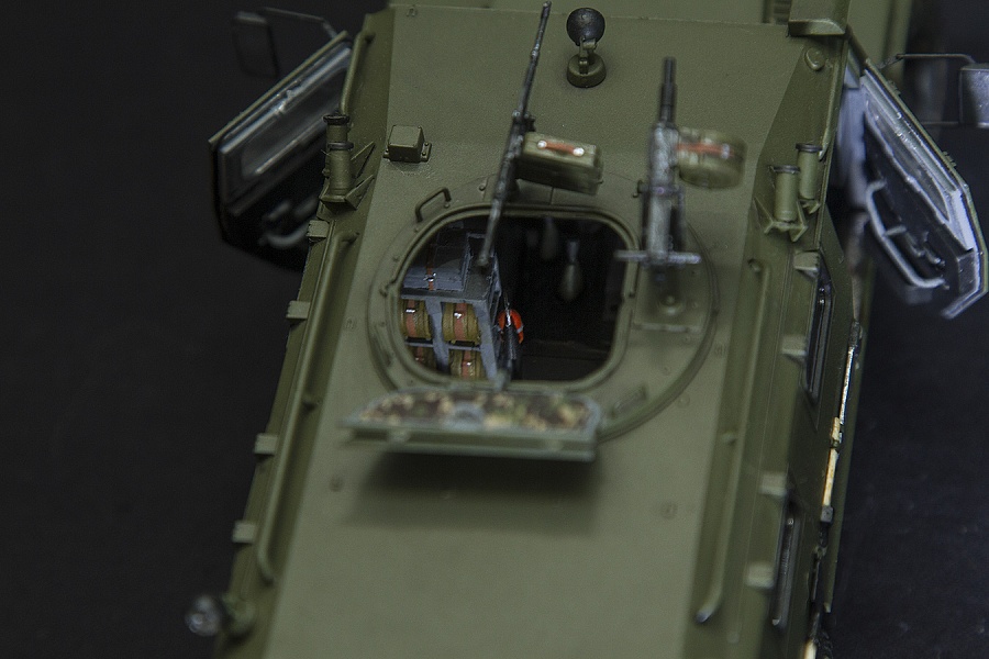 | Очередной вариант тигра с салоном. Исполнена в "изкоробочном" варианте с небольшими доработками. Окрашена с фотки действующей машины. Краска звезда, смывка акварель. надо отметить что данный менг отлит халтурно, а колёса это вообще полный атас... | |