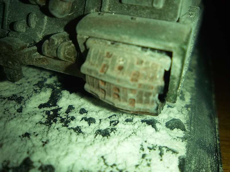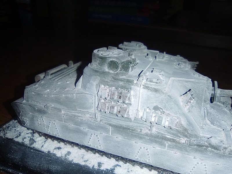 | Приветствую, коропчане! Хочу представить вам свою первую модель на этом сайте. Сам танк родился в 1945 году в Англии. В боевых действиях не участвовал. Сама модель танка продавалась в киоске с журналом, уже собранная. Я решил разобрать ее-это дело 5 минут. Собрать обратно проблем не составило. Использовал пигменты Revell. «Заснеживать» модель пришлось долго. Немного черного акрила звезды. И танк готов! | |