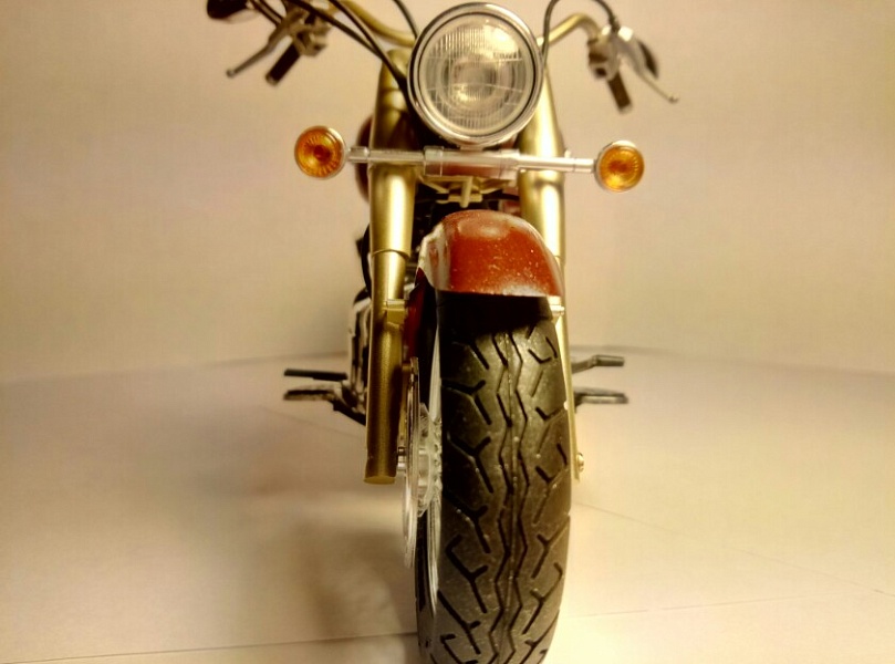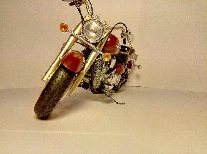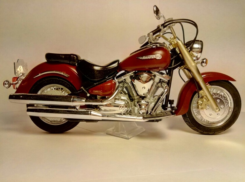 | Доброго времени суток, глубоко уважаемые Коллеги. Имею честь предоставить Вашему вниманию изкоробочную версию Yamaha XV1600. По модели особо сказать нечего, тамия есть тамия. Стыкуется все на ура. Сборка приносит огромное удовольствие Окраска с использованием тамиевского акрила . Есть косяки , прошу не кидаться тапками |