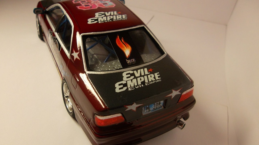-Оптика неаккуратная. Что за подтеки краски сверху и снизу на фарах? Задние фонари почему-то покрашены непрозрачной красной краской. Тут нужен красный лак.