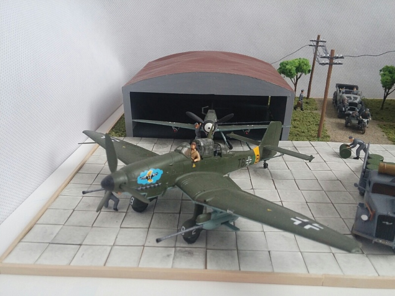 И в самом деле! Киносъемка - самое лучшее. Ибо иначе непонятно, где события происходят. Скажем, лаптежник - это Ju-87G из 10/StG2, летавший в Словакии в 1944-м году (и откуда там советские солдаты взялись?). А 110-й - это Bf-110E-1 из 8/ZG26, летавший в северной Африке в 1941-м году в песочном камо. Собственно, в описании сказано о фантазийности.