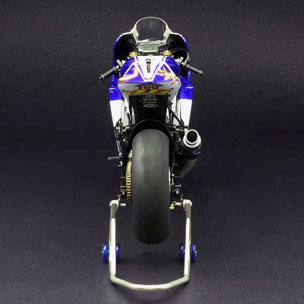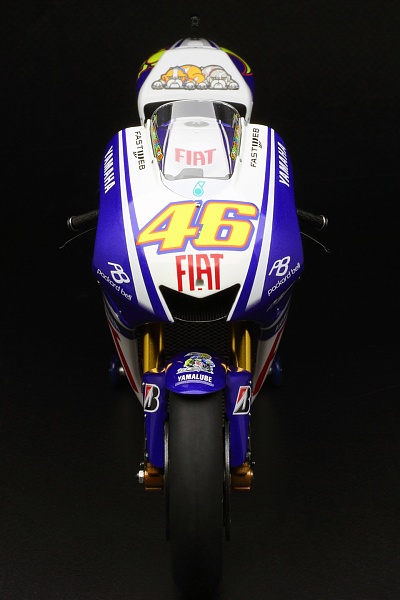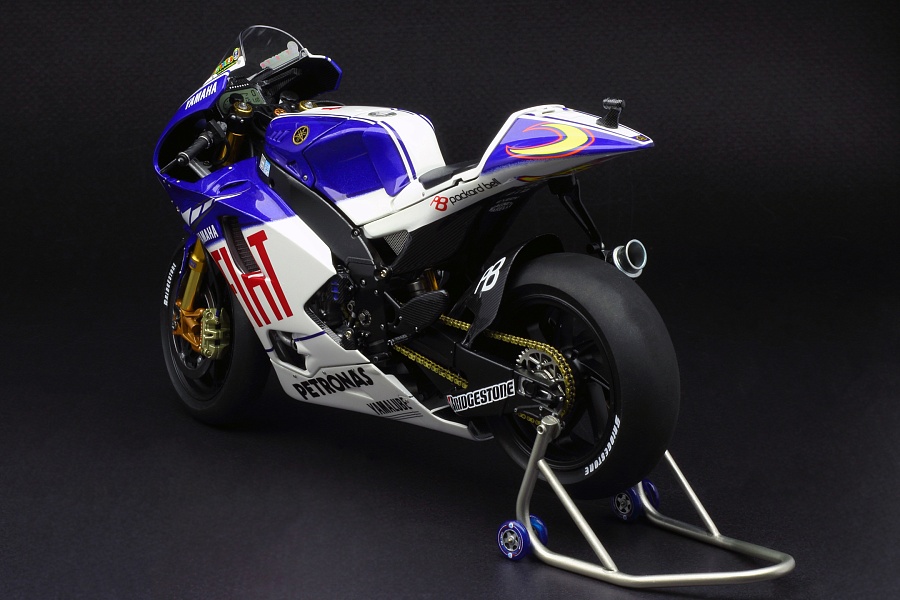 | Доброго времени суток. Представляю работу мотоцикла «Yamaha YZR-M1’09» от компании Tamiya. Настоящий прототип разработан специально одноименной компанией для участия в серии MotoGP, поэтому данная техника отсутствует в свободной продаже и не разрешена к эксплуатации на дорогах общего пользования. Мотоцикл Yamaha YZR-M1 2009 года оснащен рядным четырехцилиндровым четырехтактным двигателем с рабочим объемом 800 куб.см. Мощность двигателя – более 200 лошадиных сил (147 кВт). Максимальная скорость более 320 км/ч, вес 148 кг. Также стоит отметить, что байк соответствует регламенту FIM (фр. Fédération Internationale de Motocyclisme – международная мотоциклетная федерация). По планам не собирался делать мотоцикл, но позвали участвовать в ГБ, что же, пришлось. Выбор был долгий, с одной стороны, хотелось собрать что-то красивое, с другой – простое. Но сами понимаете, не бывает «хорошо и просто». Взгляд зацепился на бульдожках, которые показались милыми и всеми своими грустными, а может сердитыми глазами так и просили «возьми нас». Как тут было устоять!? Выяснилось, что их зовут Чезаре и Сесилия – бульдоги Валентино Росси. Для меня мотоцикл начал нравиться только по мере сборки, когда углубился в мат часть. Начинаешь видеть действительно красивое в его форме, дизайне, со временем привыкаешь и к необычным причудливым надписям, значкам, прочей символике, которая несет определенный смысл для лучшего райдера в мире. Набор относительно не новый и переходит уже к разряду раритетных, однако, тамия – есть тамия, стыкуемость, собираемость, инструкция, логистика – все на высоте. Набор сложный, а конкретно в декалях, предлагается лист чуть ли не формата «А4» на две версии мотоциклов Валентина Росси под номером «46» и Хорхе Лоренсо «99», выступавшие в 2009 году в одной команде «Yamaha» и занимавшие призовые места в гран при (на тот год у Росси было 6 побед, у Лоренсо 4). Всё отличие в номерах и символике, поэтому основная масса декалей общая. Из дополнений: 1) Footpeg for '05 - '10 YZR-M1 – Top Studio; Краска от тамии из серии TS, эмалевые и акриловые. Лак от mr.Hobby. Полировка наждачками 2500/3000, полиролями №75 и 76. В конце воск от тамии.Проект, несмотря на свои сложности, оказался интересным и в конце действительно получил ту порцию позитива, которую, надеюсь, испытывает каждый после завершения очередной работы. Желаю приятного просмотра, конструктивной критики и обсуждений, буду рад каждому, кто заглянет в гости!:) Ну и как обычно пожелаю, раз тема пошла о высоких скоростях, «Сильно не гоняйте, но и лишнего не тормозите»! |