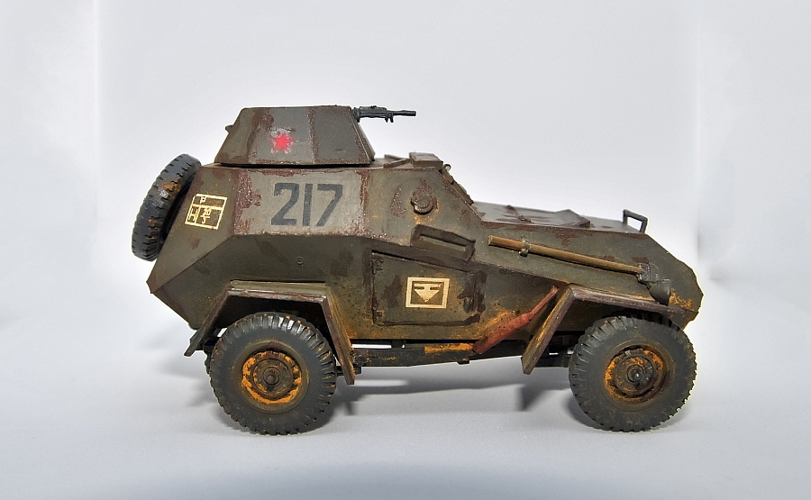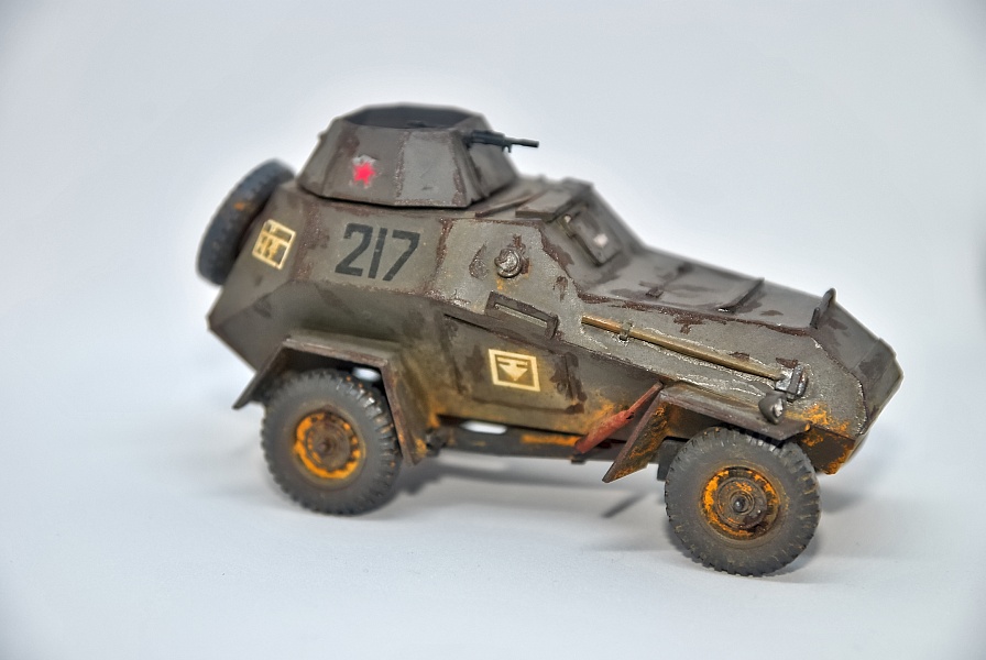 красил тамиа, историчности большого внимания не уделял, но поручень на башне все же попытался изобразить просмотрел. на фото (видимо от света) высветило развод от закрепителя и бликанула декаль |