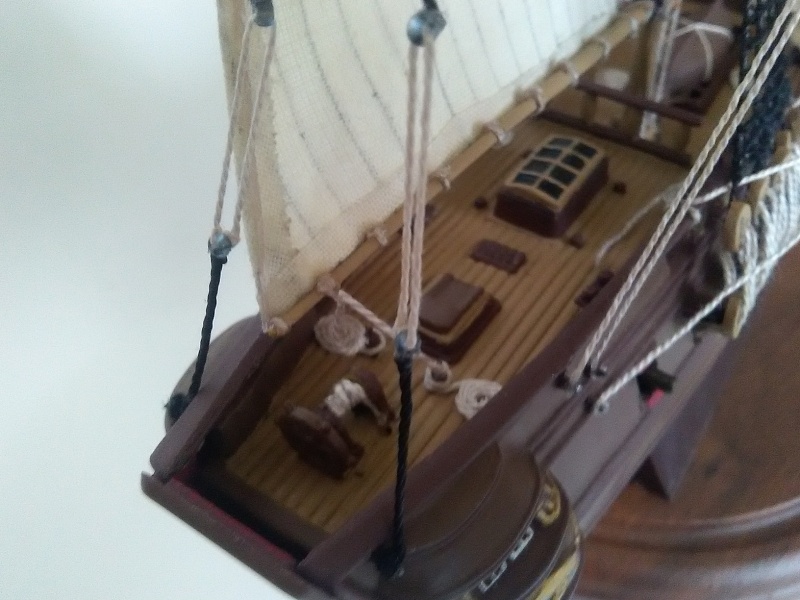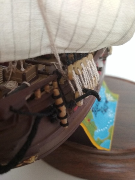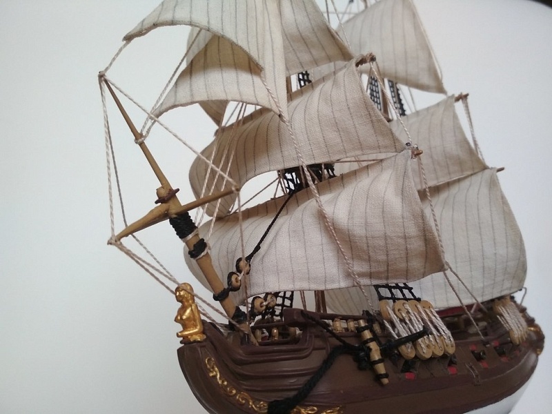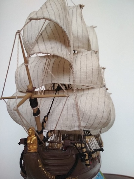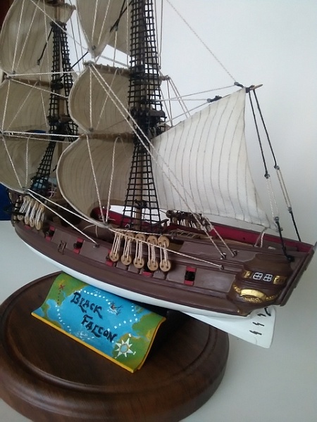 | Доброго дня коллеги.Представляю на Ваш суд данную модель.Не будем вдаваться в подробности и описывать недостатки данной перепаковки моделистом, такие как облой, нестыковка многих деталей, общая кривизна и тд и тп. Да и не бриг это вовсе, а этакий капер примерно 17 века. Из набора использовал корпус, пушки и лафеты, якорь, реи и мачты (о чем потом пожалел, ибо их безбожно гнет). Доработки: весь такелаж, парусное вооружение и по мелочам.Недостатки и грубые ошибки: масштаб юферсов и их расположение, обвязка лафетов, блоки из неокрашенного бисера, косяки в покраске и много мелочей и неточностей.Данный набор строил как "кошку", учился и делал очень многое в 1 раз.Исходя из вышеизложанного, модель отправляю в песок или в личные, на усмотрение публики и модератора.Огромное спасибо Шейнину Игорю за консультации. Р.С. бриг уйдет другу в подарок. |