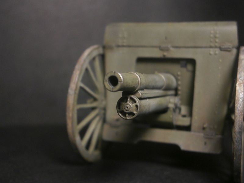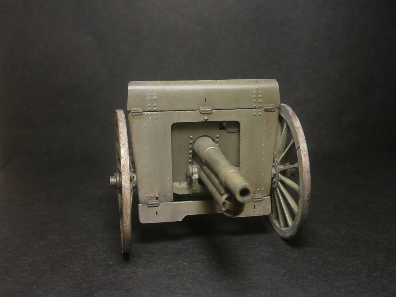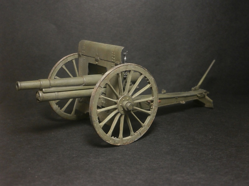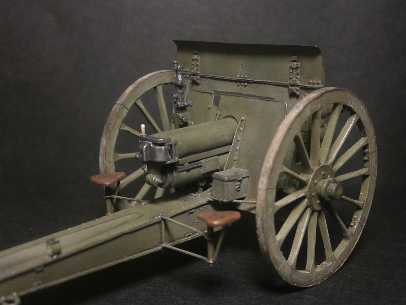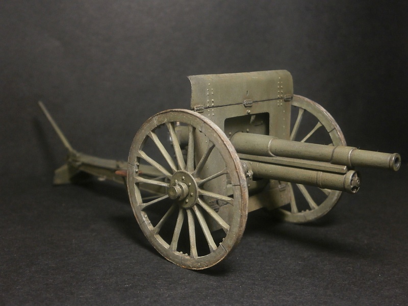 | Знаменитая трёхдюймовка, русская "коса смерти", основа парка полевой артиллерии РИА в первую мировую войну. Модификация 1902г со щитом, который начали устанавливать с 1906г. Модель от фирмы um не отличается деталировкой и качеством, так что почти всё пришлось менять или дорабатывать с помощью листового пластика, болтов и заклёпок от мастерклуба и тд. Особенно сильно пришлось перепиливать колёса. При окраске старался отойти от 4бо и добиться царского зелёного с серым оттенком, уж не знаю насколько это получилось.Красил тамиевским акрилом, фильтры AK, тонировка-художественное масло, сколы и потертости-карандаш, немного пигментов. Приятного просмотра. | |