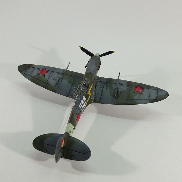 Здравствуйте!машины первых партий проходили подготовку ещё в Англии,были собраны из самолётов разных модификаций,есть в интернете фото как англичане накрашивают звезды,в нижней проекции у меня какарды просматриваются(попробовал сделать эффект укрывистости краски)