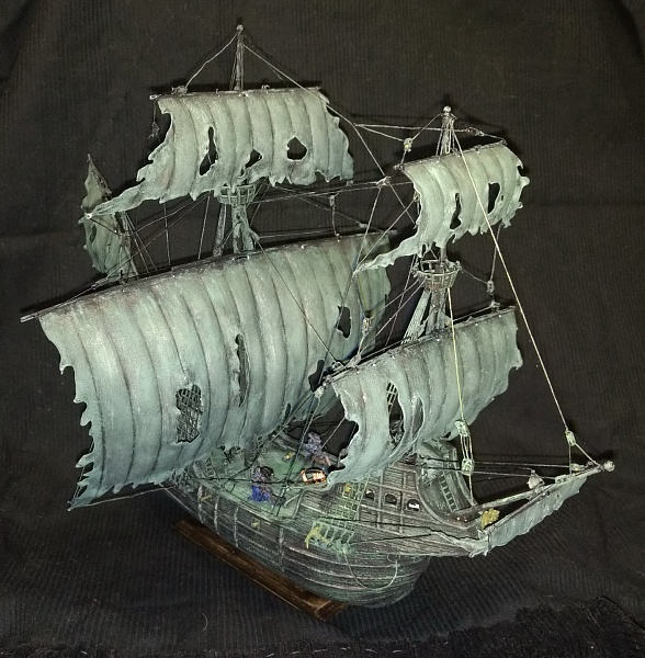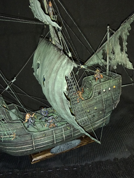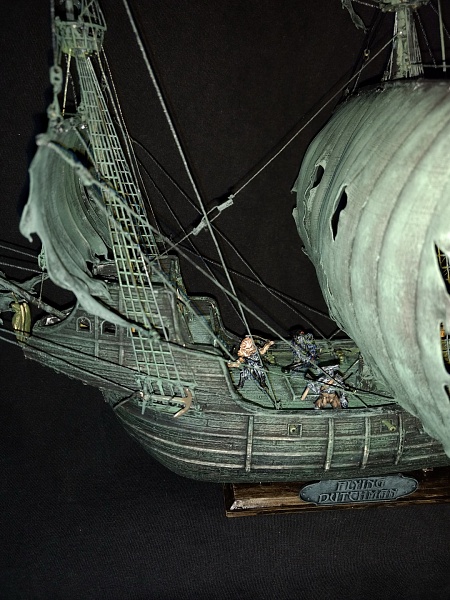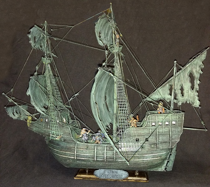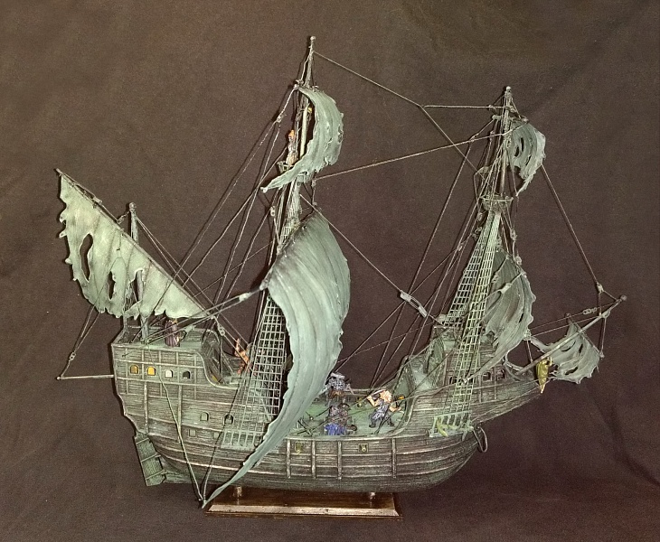 | В рамках операции по ликвидации старых запасов и освобождению мест для новых коробок взгляд упал на колоритный набор от Звезды в 100 масштабе - Летучий Голландец. Скажу сразу - модель ужасная, худшее из всего, с чем мне приходилось иметь дело. Облой, утяжины, миллиметровые стыки пресформ, толкатели, крайне плохая стыкуемость деталей и очень условная детализация. При попытке довести модель хоть немного до ума работа грозилась перейти в очередной многолетний долгострой, поэтому было принято решение об относительно быстрой сборке изкоробки, частично компенсируя недостатки модели яркой окраской и характерными фигурками экипажа. Окраска кистью, темпера Мастер-класс, металлик и экипаж - Мастер-акрил. В целом, результат довольно забавный. По мне, не заслуживает, конечно, публикации среди остальных кораблей, но достойна, по крайней мере, быть продемонстрированной широкой публике. Может быть этот корабль не имеет ничего общего с Голландцем из популярного фильма, но, пожалуй, не будем судить о матчасти по художественным произведениям) |