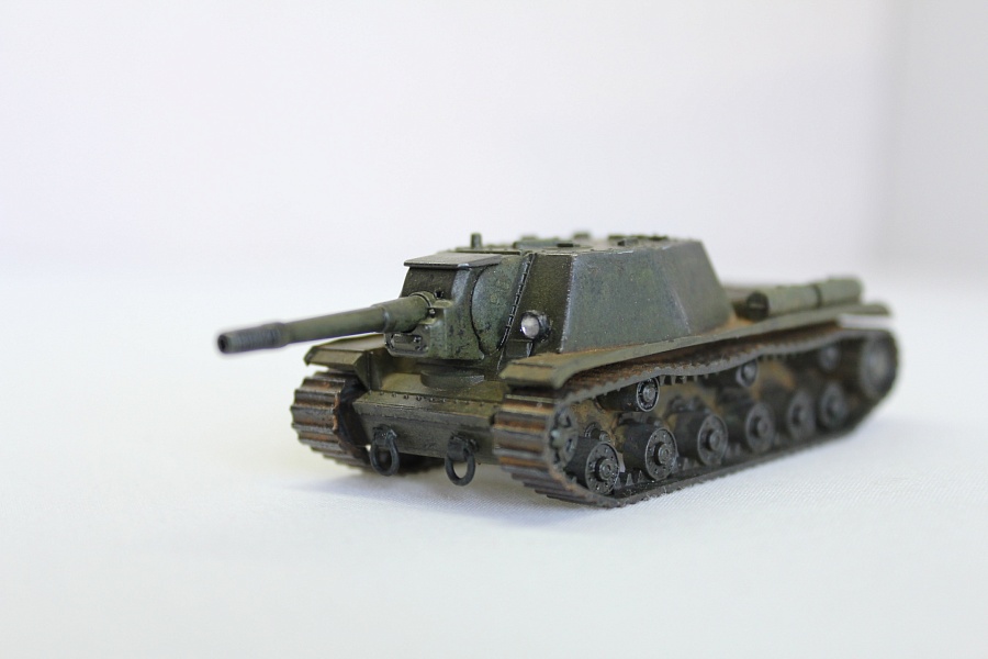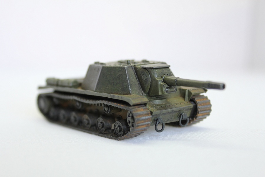 | Модель-фигурка для настольной игры от Звезды. Масштаб 1/100. Решил попробовать себя в сборке "клопов", т.к. на "большие" модели пока ни времени, ни места не хватает. В работе использовал:Краски "Звезда", грунт "Тамия", пигменты, смывки "ZIP".Покраска кистями. Минимум доработок:1) Фара Эльф;2) Кантик на крылья и брызговик из "Дошипластика"; 3) Буксировочные петли;4) Рассверлен ствол.  |