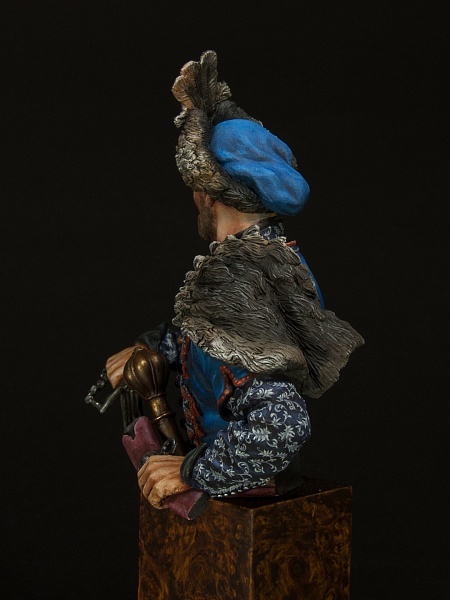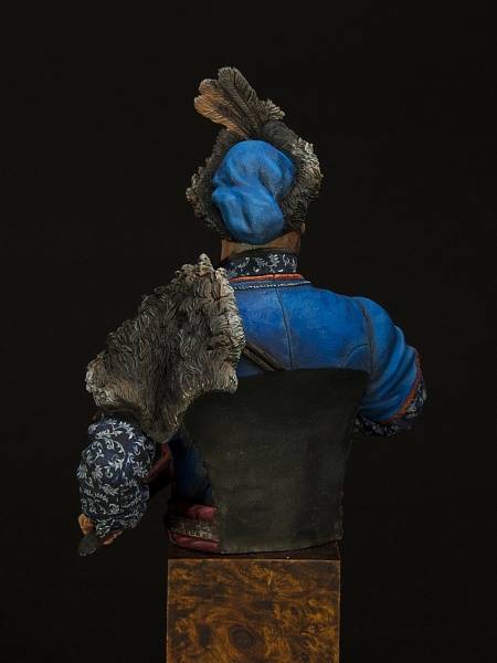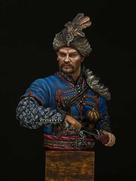 | Я не очень люблю т.н. ре-пейнты, но, видимо, действительно удачно вышел первый вариант росписи Богуна, раз новый заказчик сказал, что хочет только так и не иначе. Поэтому единственное существенное отличие от варианта номер РАЗ - цвет шапки. Здесь она идет в один тон с верхней одеждой, а там оттенки заметно отличались. Остальные отличия только технические. |