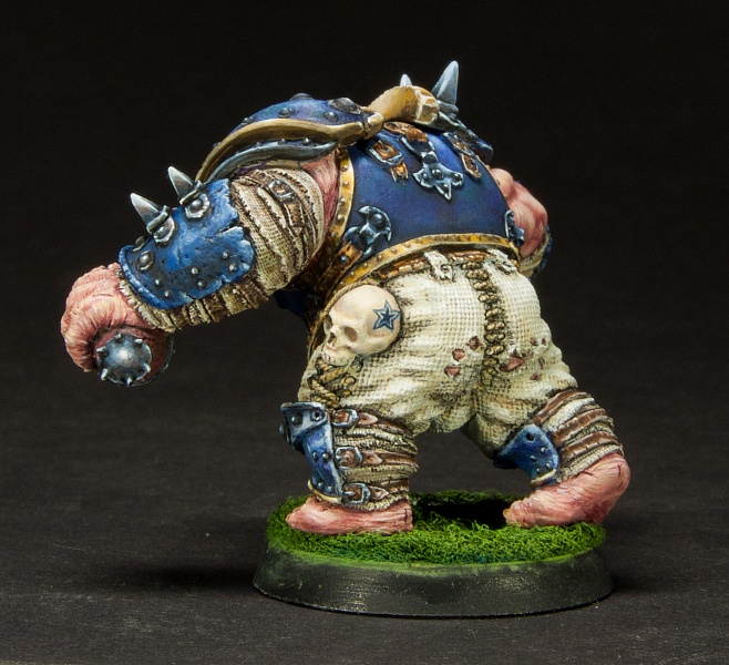 | Новинка от http://scalebro.com масштаба 28 мм. Хотя учитывая, что это огр, то физические размеры чуть побольше - около 40 мм в высоту. Скульптор - Александр Ковалев. Садист! (это типа комплимента) От количества мелких деталей я выл, но все они выполнены Александром с ювелирной точностью. Роспись акрилом. И немного о том, чего нет на вини,.. тьху! Опять King Diamond со своими многозначиями текстов! Не на виниле, а о том, о чем прямо не сказано, так сказать, при росписи. Огры - существа туповатые. Поэтому наш огр нашел себе место среди "Баранов" из Сент-Луиса. Цвета этой команды традиционно именно такие - синие кофты, белые бриджи, темно-синие шлемы со стилизованными рогами барана. На спине у него вполне огровское имя - Тарг. Почему номер "2", пока не могу сказать - номер под защитой правообладателя. На правом наруче эмблема "Рэмс". На мяче владелец фигуры сможет увидеть эмблему Американской футбольной лиги, в которой латинская литера "А" изменена на "Н", и теперь это футбольная лига Орды. Там же рядом крошечный логотип "Рэмс". На поясе у игрока болтается череп, на котором можно увидеть синюю пятиконечную звезду. Это эмблема легендарных "Даллас Ковбойс" - заклятых врагов "Рэмс" по играм плей-офф (надеюсь, никого этим не обидел!) Собственно, из такого все. В комплекте идет две головы - в шлеме и без такового, но сразу хочу предупредить, что менять, как здесь, не очень удобно (можно, но не часто во избежание "травм") - детали подогнаны очень четко, поэтому предпочтительнее сразу определиться, как фигура будет выглядеть в итоге. |