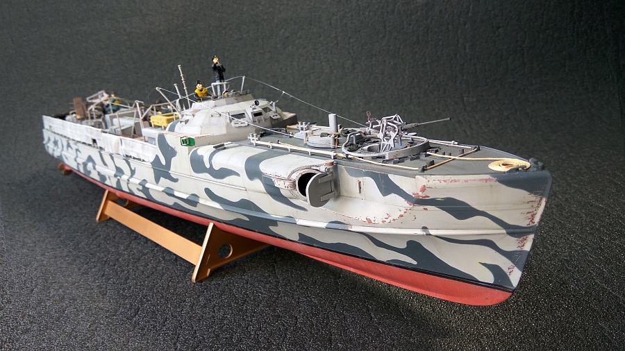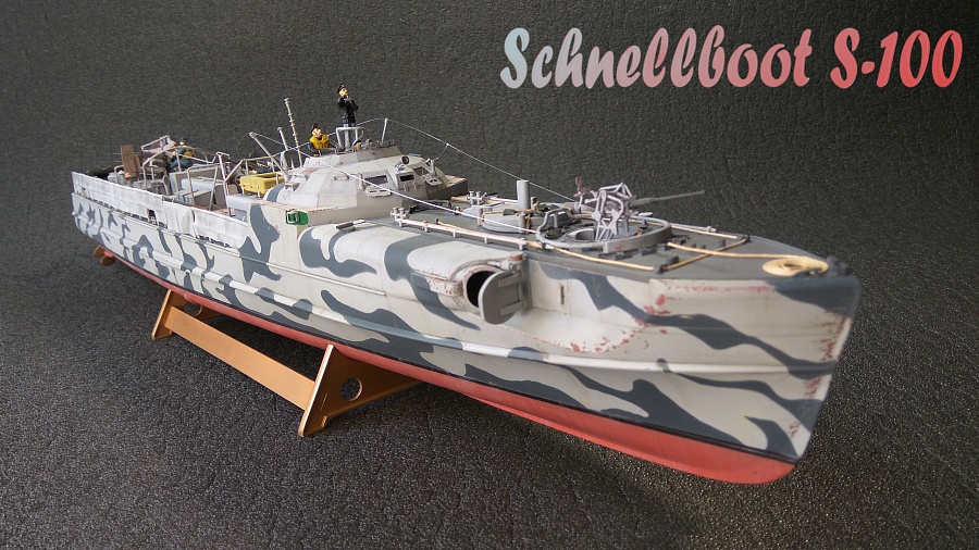 | Здравствуйте, уважаемые моделисты. Хочу представить Вашему вниманию свою модель немецкого торпедного катера Schnellboot S-100. История тут уже не раз описывалась,не будем повторятся. В качестве дополнений использовалась травлёнка от Eduard и Griffon для орудий с точёными стволами, ну и ещё фигурки от Czech Master.Желаю приятного просмотра. | |