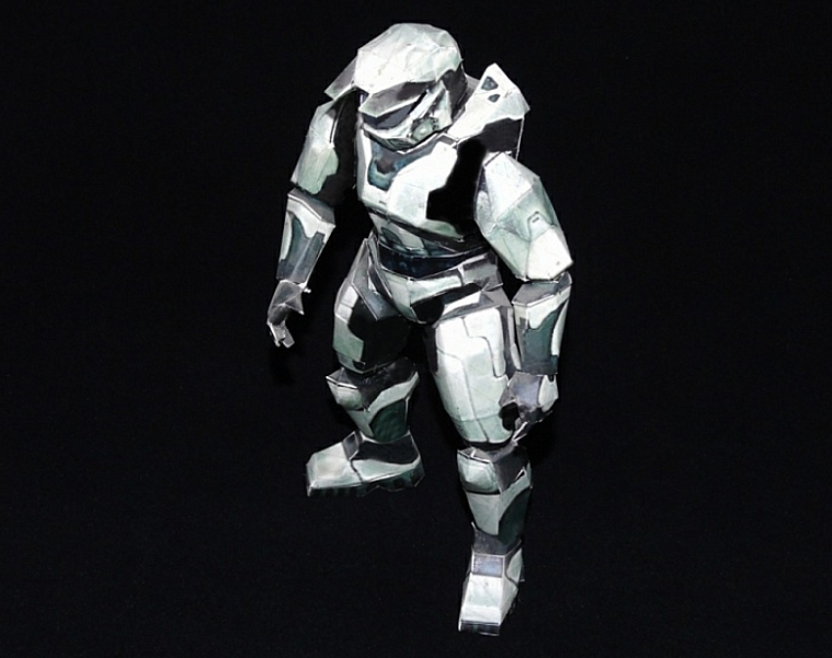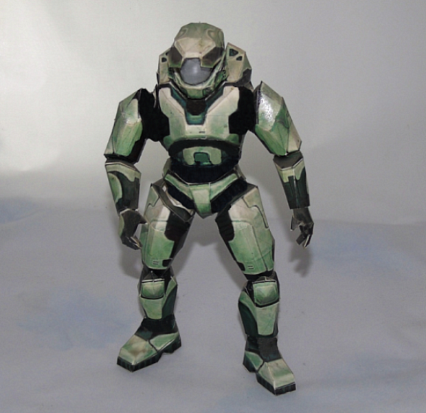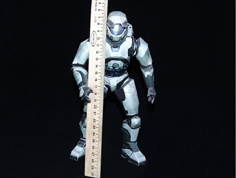 | Hallo-3, фигура мастера ЧИФ, масштаб 1:24 , выкройки деталей и их размеры и конфигурация расчитывались на ПК, материал чёртёжная бумага вырезанная и пропитанная универсальным супер ПВА клеем | |
