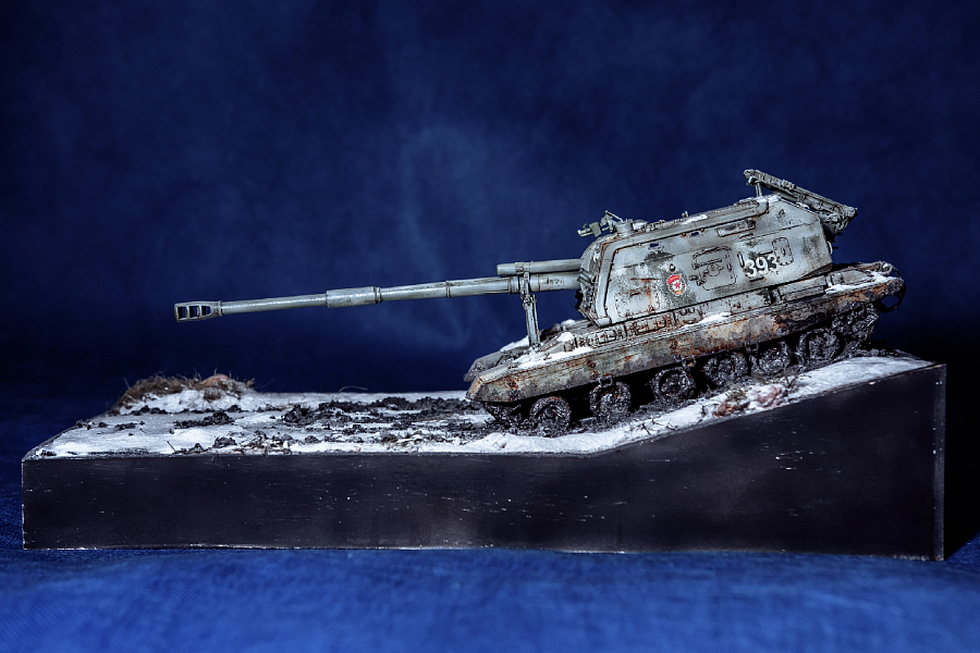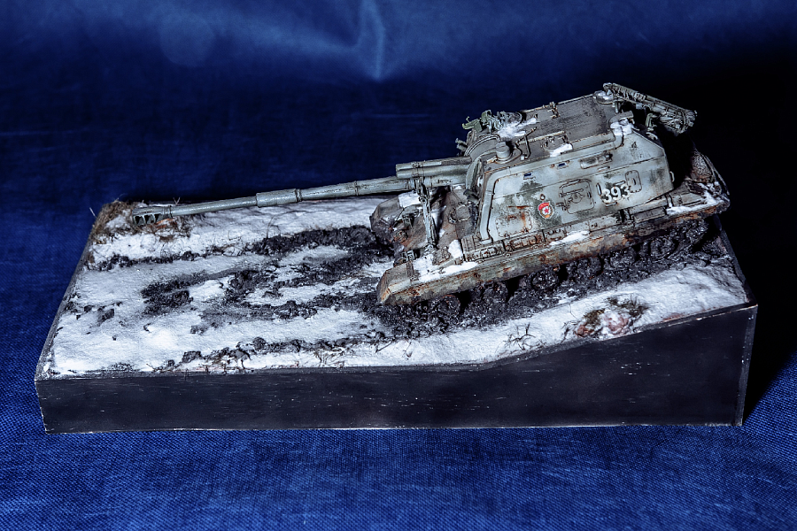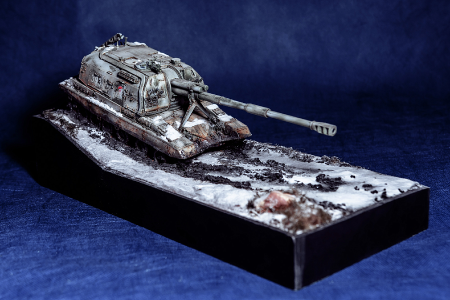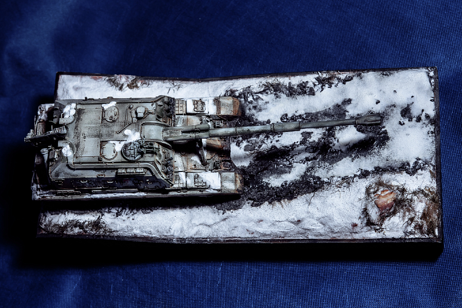 Модель понравилась, выглядит эффектно, заснеженная грязь натурально получилась. Но все же это скорее не диорама, а просто модель с подставкой, так что наверное лучше ее в "Бронетехнику" разместить