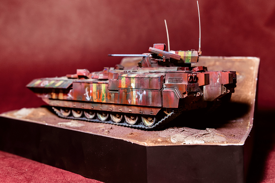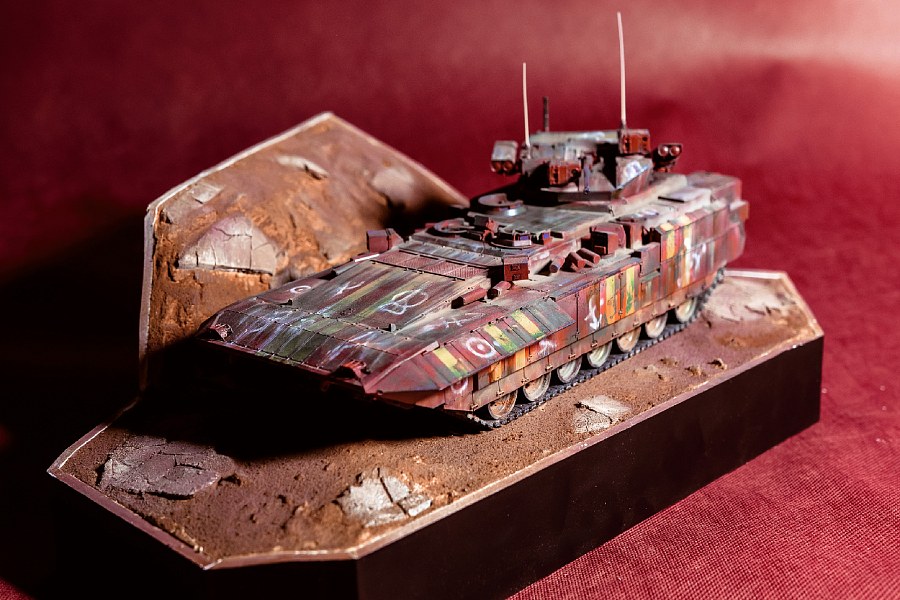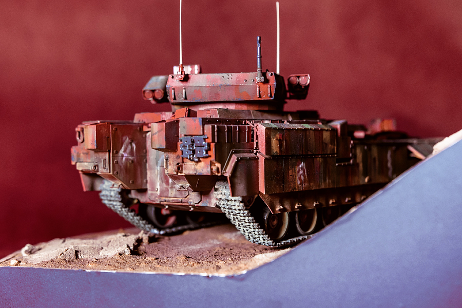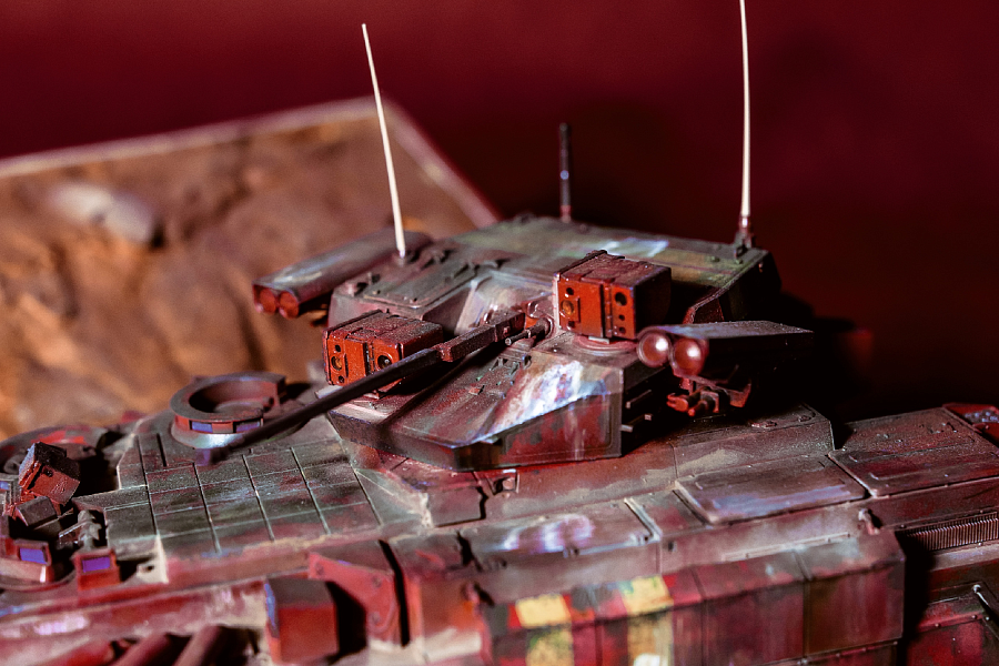 | Друзья и коллеги всех приветствую.На старте продаж приобрел данную машину и не разу не пожалел,сама модель отличного качества,очень понравилось решение с траками которое упрощает процесс сборки в разы.Что касается самой идеи то мысль такая пришла спонтанно и внезапно)надоели стандартные подходы к работам БТТ и решил дать разгуляться фантазии.Перекрашивал несколько раз.....сначала нравится потом нет))и так из раза в раз...пока не пришел к теме Марса,посмотрел фото поверхности этой планеты и решил насколько это возможно для себя повторить что то подобное)Красил Тамией,эффекты МИГ и куча всяких масел и пигментов)Всем приятного просмотра) |