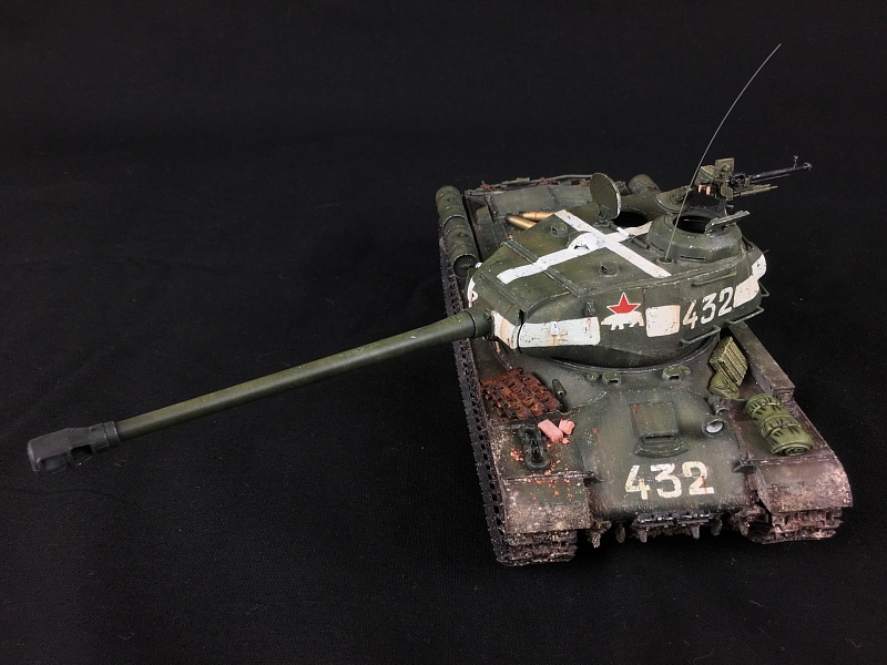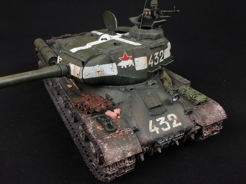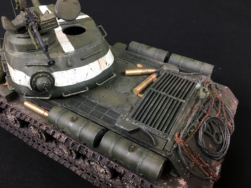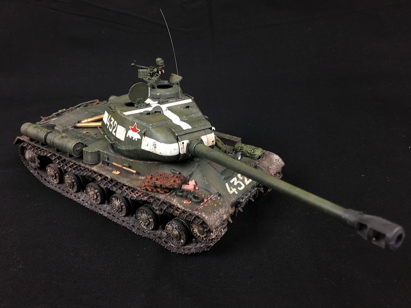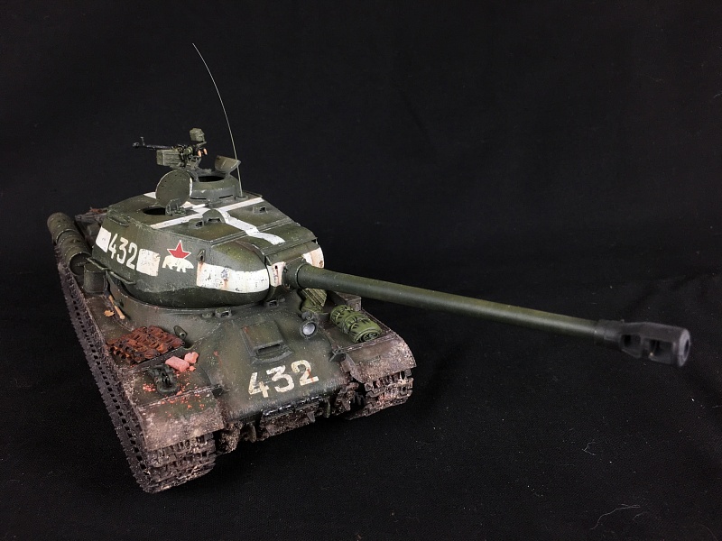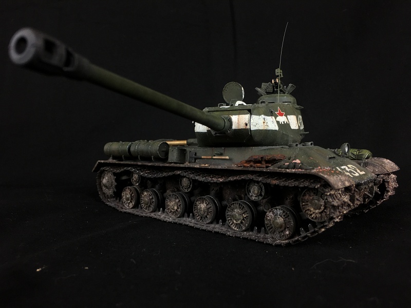 | ИС-2 обр 1944 г. Думал, соберу по быстрому, отложу и все. Но по мере сборки ко мне пришло осознание, что хочется следовать еще одной моей доброй традиции - большому танку - тяжелые металлические гусеницы. Все свои танки в 1/35 я стараюсь снаряжать металлическими траками, но не всегда. Если модель совсем дешевая, или наборные траки не идеальные, как, например, маджики от Dragon’а, которые создал сам бог пластиковых дитолей. Ну и еще один вариант, когда наборные траки рабочие и очень сложные, как на современке. К примеру, Т-90МС от Tiger Model. В этом случае мне лень зачищать мелочь, да и почему бы не пойти во все тяжкие и не поставить на дорогую модель металл?) Собирая ИС-2 на стадии ходовой, я провафлил сборку гусениц. Все собрал, все катки, начал примерять, иии... Обе ленты имеют либо зазор крупный, либо лишний трак настолько лишний, что даже рассматривать вариант его добавления не приходится. А что ленивец? Я точно не помню, либо я его намертво приклеил, либо сама модель не позволяет его регулировать. Пилить же я ничего не хотел. Ну и пошло-поехало. Купил металл от Friul’а, естественный провис, все дела. Еще немаловажной деталью стал зенитный пулемет, который (НЕ ИДЕТ В КОМПЛЕКТЕ модели от Тамии). Я всегда люблю машины грозные и раз уж пулемет на ИС-2 историчная вещь, а его нет - придется установить самому. Планка и крепления самодел - сам ДШКМ из набора миниарта, что не очень исторично на данной машине, но особого выбора у меня не было, да и заметил я эту деталь только потом. Ящики и сумки - из набора от Miniart. Гильзы не помню от кого. Дальше действовал по стандартной схеме - крашу отдельно корпус с башней / катки / гусеницы. Очень радует, что Тамия снабжает модели силиконовыми втулками для катков. Их можно примерять и снимать при необходимости. Катки я натирал True Gun Metal от AK Interactive. Задувал модель последовательно от черного к зеленому, получилось темновато и немного не так, как хотел, но опыт на то и опыт, чтобы пробовать и совершенствоваться. Сколы - с подложкой, делал мелкой кистью и спонжем. Тонировка маслом из тюбиков 502 abt. Мастер Класс. Тут я оттенки не считал, мазал все, что было. Что касается также и пигментов, коих тут я использовал банок из 10 разных цветов. Выделил грани тем же Ган Металлом от АК. Танкистов, которые идут в комплекте с моделью склеил, зачистил, зашпаклевал, зашкурил, загрунтовал, нанес с аэра основные цвета и расписывал кистью. Жаль вовремя фотки с ними не сделал, пока была такая возможность. В целом результатом доволен, но конечно, хотелось собрать и более выразительную работу. |