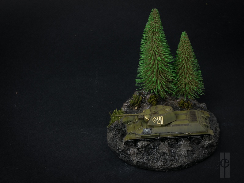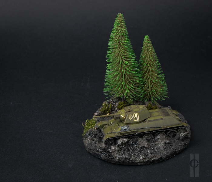 | Виньетка «Танки грязи не боятся!». Звезда (Zvezda), Т-34/76, масштаб 1:72 Модель была сделана к конкурсу стендового моделизма в г. Вильнюсе (Литва) (18 - 20.05.2018) https://www.modeliuok.lt/wp/?page_id=1093 Сборка: к базовой модели были сделаны следующие незначительные доработки: рассверлил ствол, место для пулемета, выхлопные патрубки и иные технические отверстия; заменен пулемет на инсулиновую иглу; прошелся шпатлевкой по щелям; с одной стороны закрепил бревно (шпажка для шашлыка); добавил лопату и дополнительные траки. Покраска: