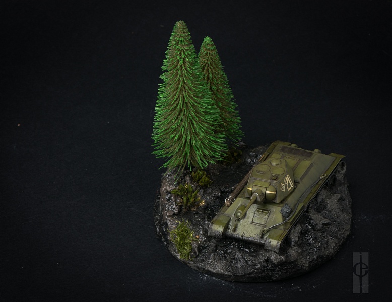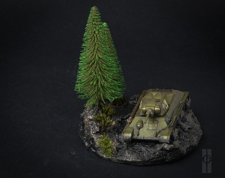 В дополнение к модели сделано основание из глины (супруга занимается керамикой) + гипс+ мелкий песок + текстурная паста от Wilder (HDF-TE-01, HDF-TE-03). Композиция дополнена елками от Noch (32625) и мхом с дачи.) |