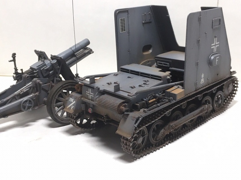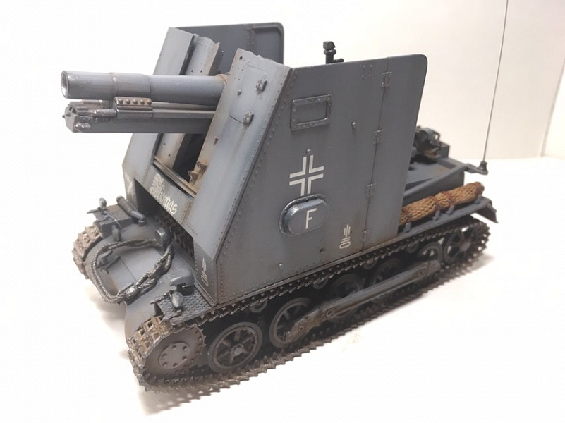 | Доброго времени суток Уважаемые коллеги, вот и закончил собирать серию немецких самоходок от АРК Моделс. В завершении серии, представляю вашему вниманию модель САУ 15cm SPG sIG33 (Sf) Модель собрана из коробки с небольшими доработками. Окрашивал акрилом от А-Модель, пигменты ЗИП, смывка Тамия/О прототипе: Sturmpanzer I 15cm sIG33(Sf) auf Pz.Kpfw.I Ausf.B известная также как Sturmpanzer I (Штурмпанцер I) или Bison I (Бизон) — самоходная артиллерийская установка на шасси Pz1. Одна из первых САУ вермахта. С танка Pz.I демонтировалась башня, а на крыше боевого отделения на стальных опорах устанавливалась, вместе с лафетом колёсами и броневым щитком, 150-мм пехотная гаубица s.I.G.33. Вся установка защищалась 4-мм броневой рубкой, открытой сверху и с кормы. |