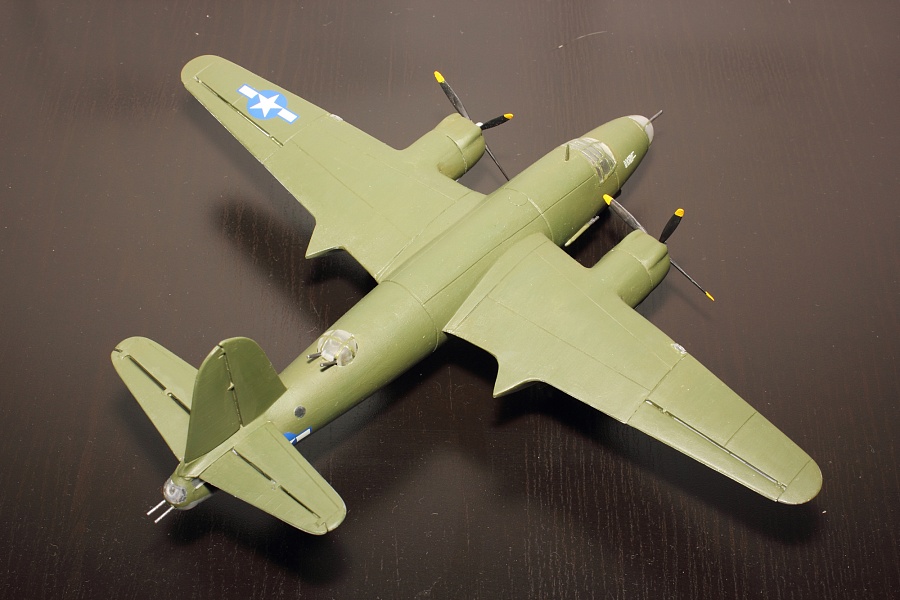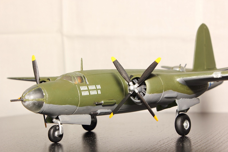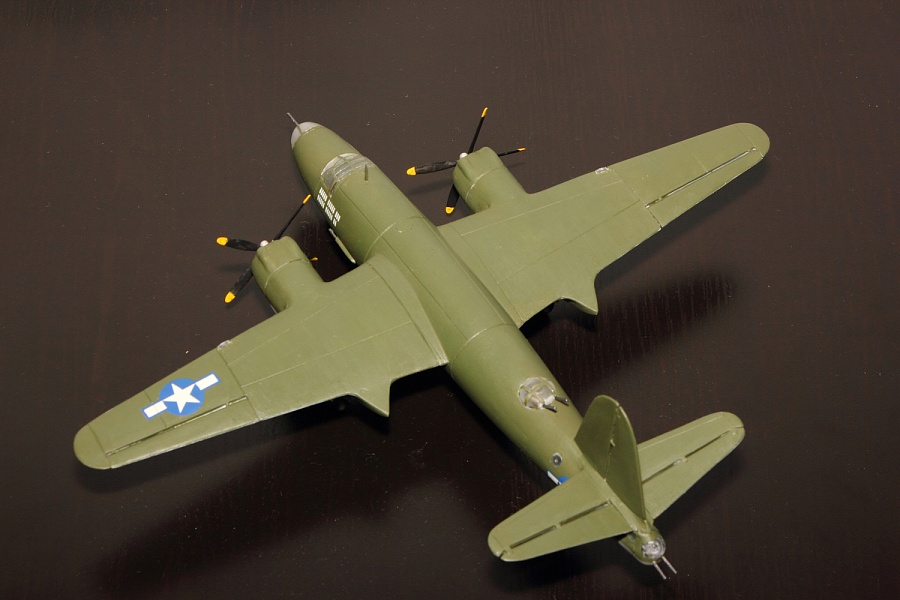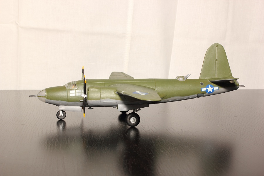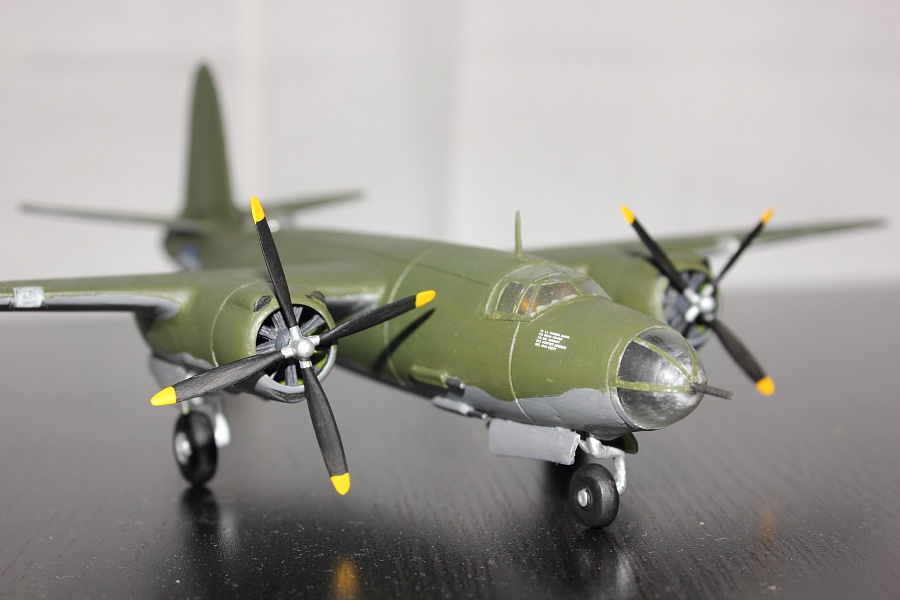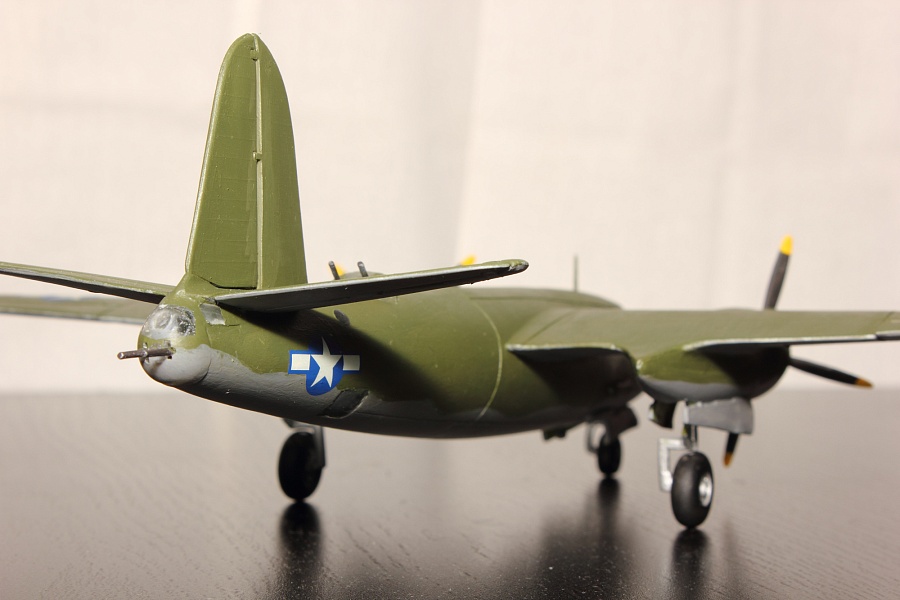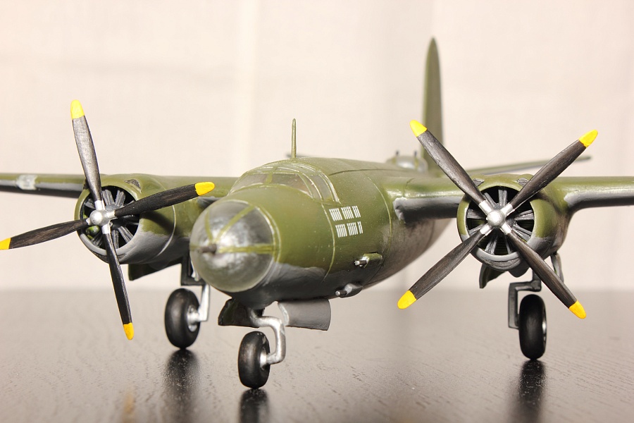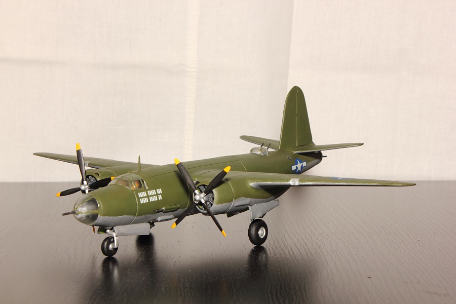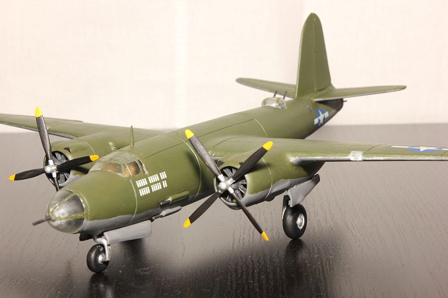 | Представляю модель от фирмы "ARK" Martin B-26 Marauder. Это средний американский бомбардировщик в годы Второй Мировой войны. Помимо США, он состоял на вооружении ВВС Великобритании, Франции и ЮАР. Всего было изготовлено 5288 самолётов разных модификаций. Модель покупал, что бы потренироваться в окраске и сборке, так как моделизмом увлёкся совсем недавно и совсем не имею ни опыта, ни практических навыков. Уже в процессе сборки решил попробовать нарезать расшивку, поэтому на модели она представлена ограниченно, по-хорошему его надо расшивать весь. Но это первая попытка, дальше будет лучше. Грунт использовал Mr.SURFACER500, а окрашивал Мастер-акрилом от "Звезды" (покупка аэрографа в планах, пока осваиваю кисть). В следствие своей неопытности, а так же откровенной кривизны фонаря и прочих прозрачных деталей, я немного их запорол при приклеивании, поэтому решил закрыть их лаком, сделав непрозрачными. Часть декалей решила рассыпаться в процессе работы с ней, решил делать без привязки к конкретному самолёту и авиа-соединению. Из доработок: немного обустроил кабину (перегородки внутри фюзеляжа, приборная панель, огнетушитель и кислородный баллон) забыл сфотографировать кабину до её закрытия фонарём. обустроил нишу переднего шасси. поменял стойки шасси на самодельные из литников, теперь самолёт уверенно стоит на своих "ногах", родные стойки гнулись от одного взгляда на них.так как фонарь и другое стекло лысые, то переплёт сделал из алюминиевого скотча. Это моя первая модель, так что надеюсь на конструктивную критику! |