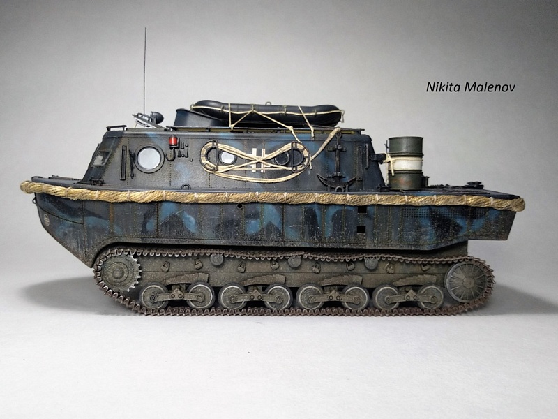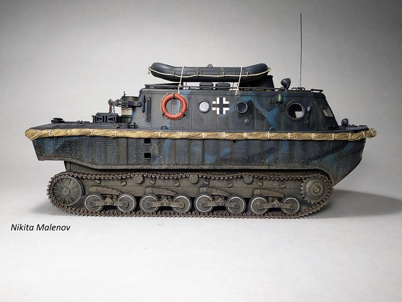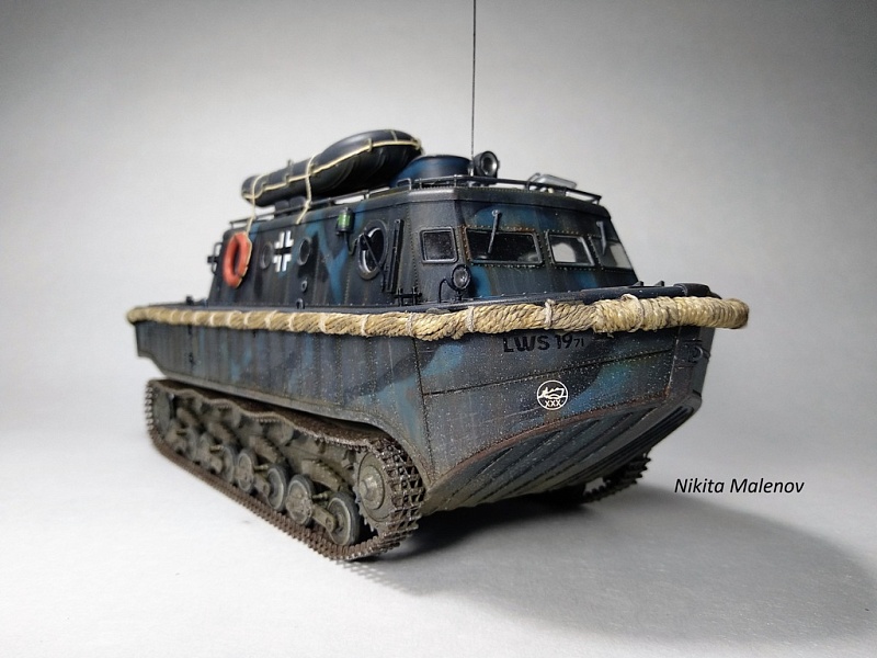 | Доброго времени суток, Господа! Представляю Вашему вниманию Land-Wasser-Schlepper или "Передайте за проезд пожалуйста!". Данная маршрутка имела экипаж из трёх человек: водила, кондуктор и регистратор (он же человек - магнитола). По задумке маршрут должен был протекать через Ламанш до родины Мэри Поппинс, но осадки в виде свинца и обломков истребителей Bf109 и Спитфайеров не позволило выйти на маршрут этим машинам. В итоге они катались по Африке, Европе и Восточному фронту. Броня посредственная, лишь защитить от пуль и мелких осколков десант. О модели: собирается легко, но побороться с утяжинами придётся. Плюс глупые ошибки, к примеру: крепления спасательного круга, производитель расположил крепления так, что его в реалии просто бы не смогли бы выдернуть, пришлось переточить. Пустой салон, самое только основное. Нос не правильный, но с учётом того, сколько его точить придётся, решил сделать вид, что я этого не видел. Из приятного - кондуктор для провиса и маски на прозрачные детальки. Кранец самодельный. Если по чесноку, кому интересно сделать шлеппер, берите Бронковский, хоть и дороже, зато ошибок намного меньше. Но в целом, модель приятная и необычная, хорошо впишется в любую коллекцию)) Окрас красками ARM.PNT. Химия AMMO.Mig, металлики Gunze. Шлюпка надувная от бронко, бочка тамия. Набор Hobby Boss 82433. |